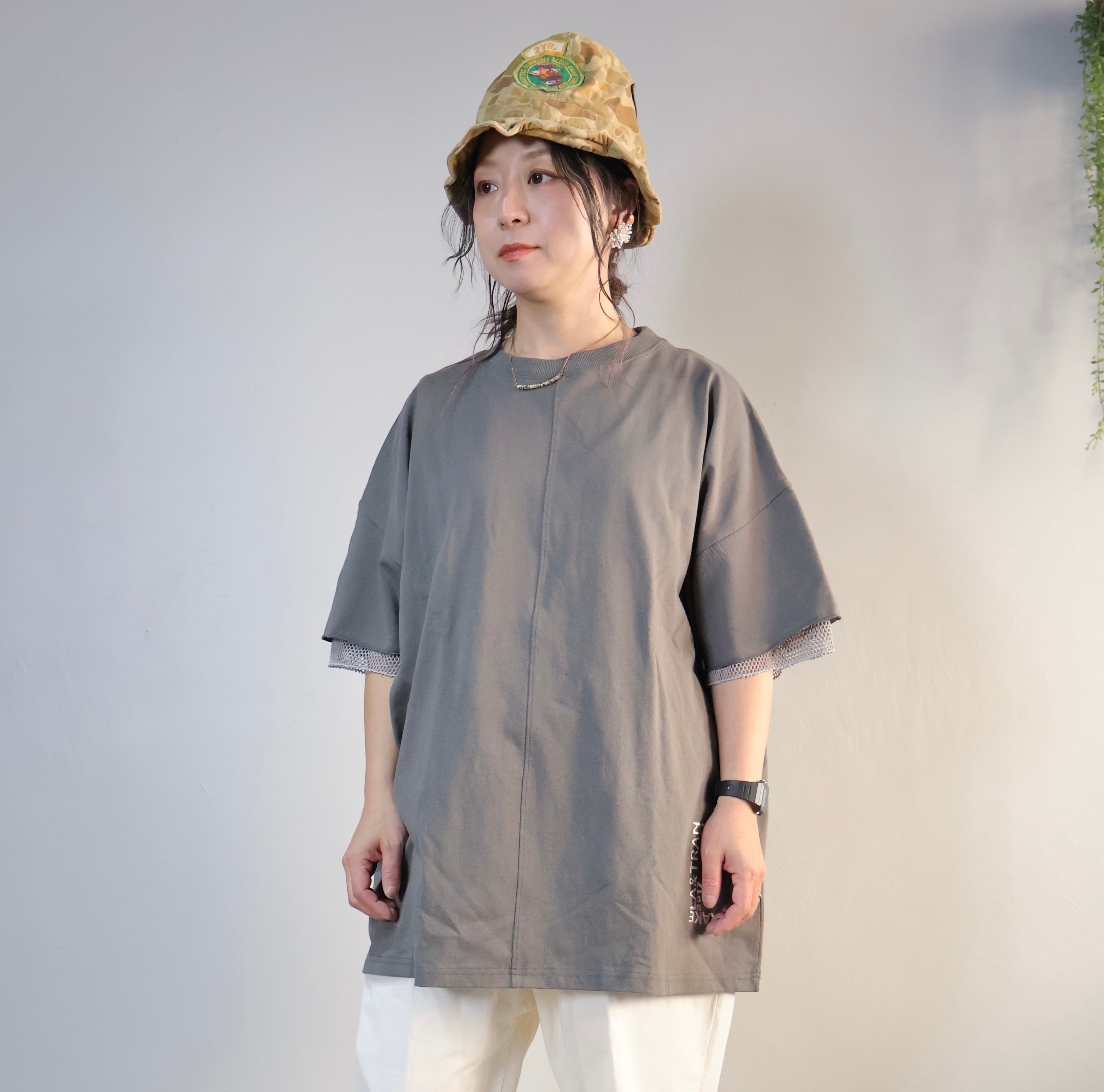 天竺×メッシュロングクルーT袖メッシュです。