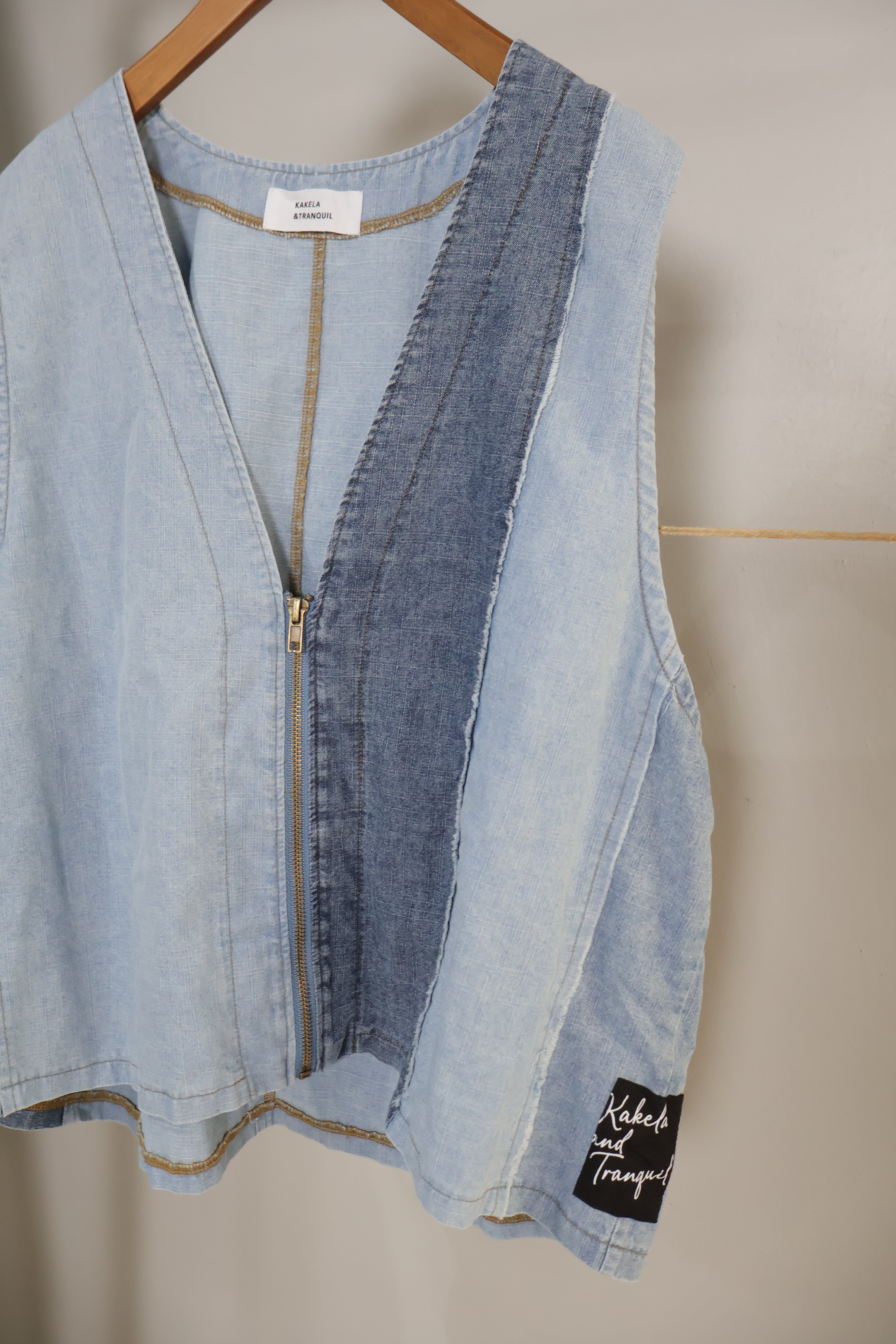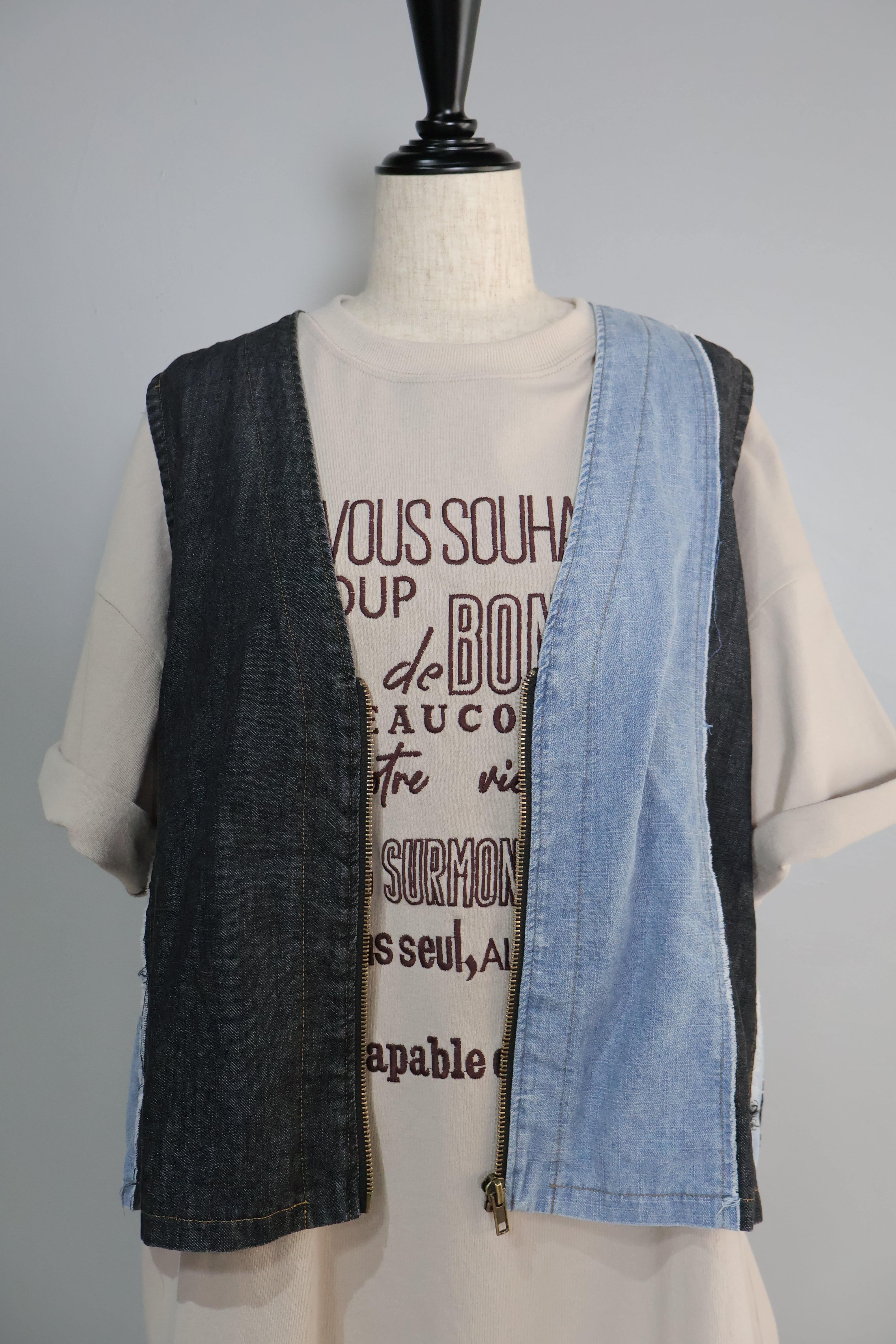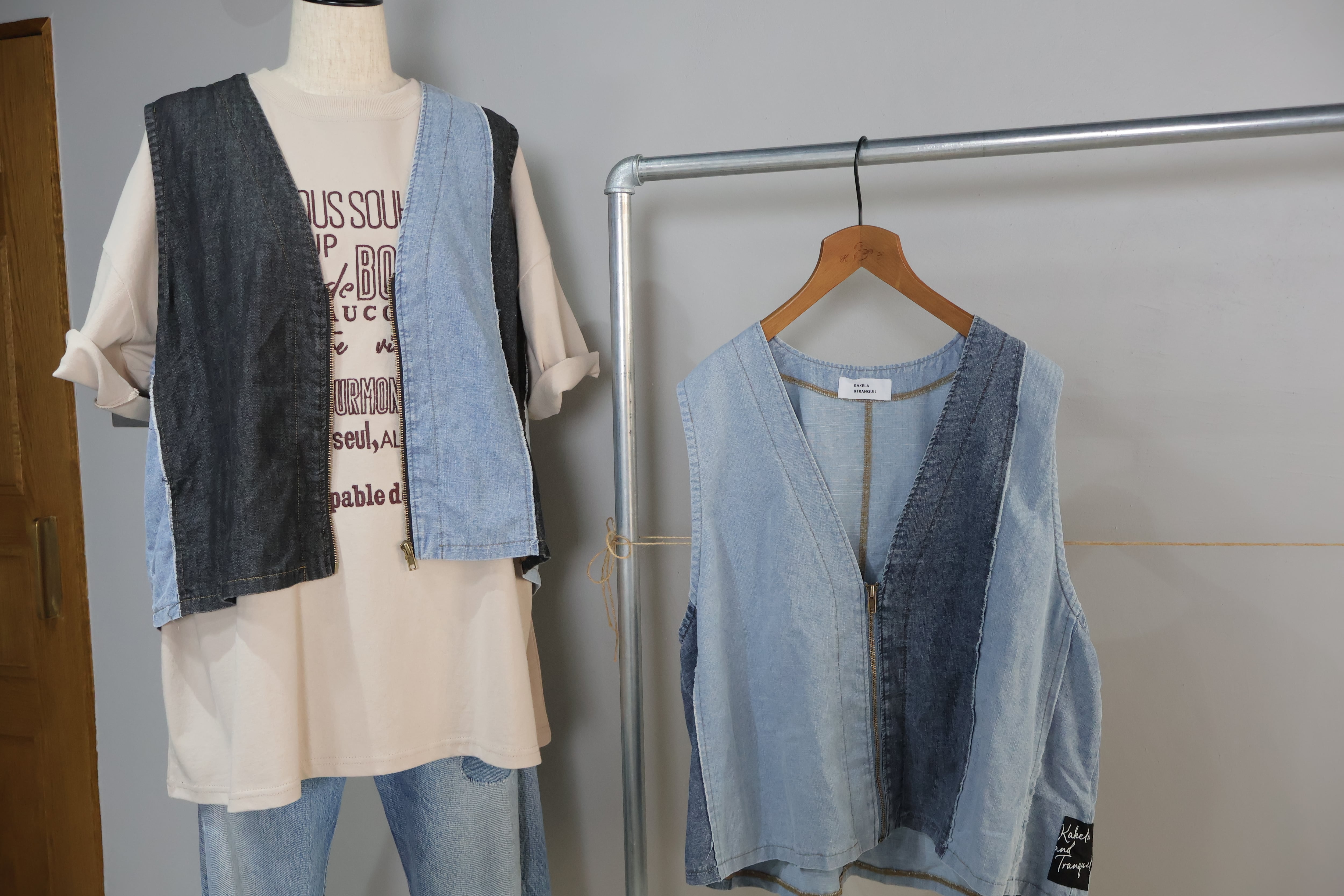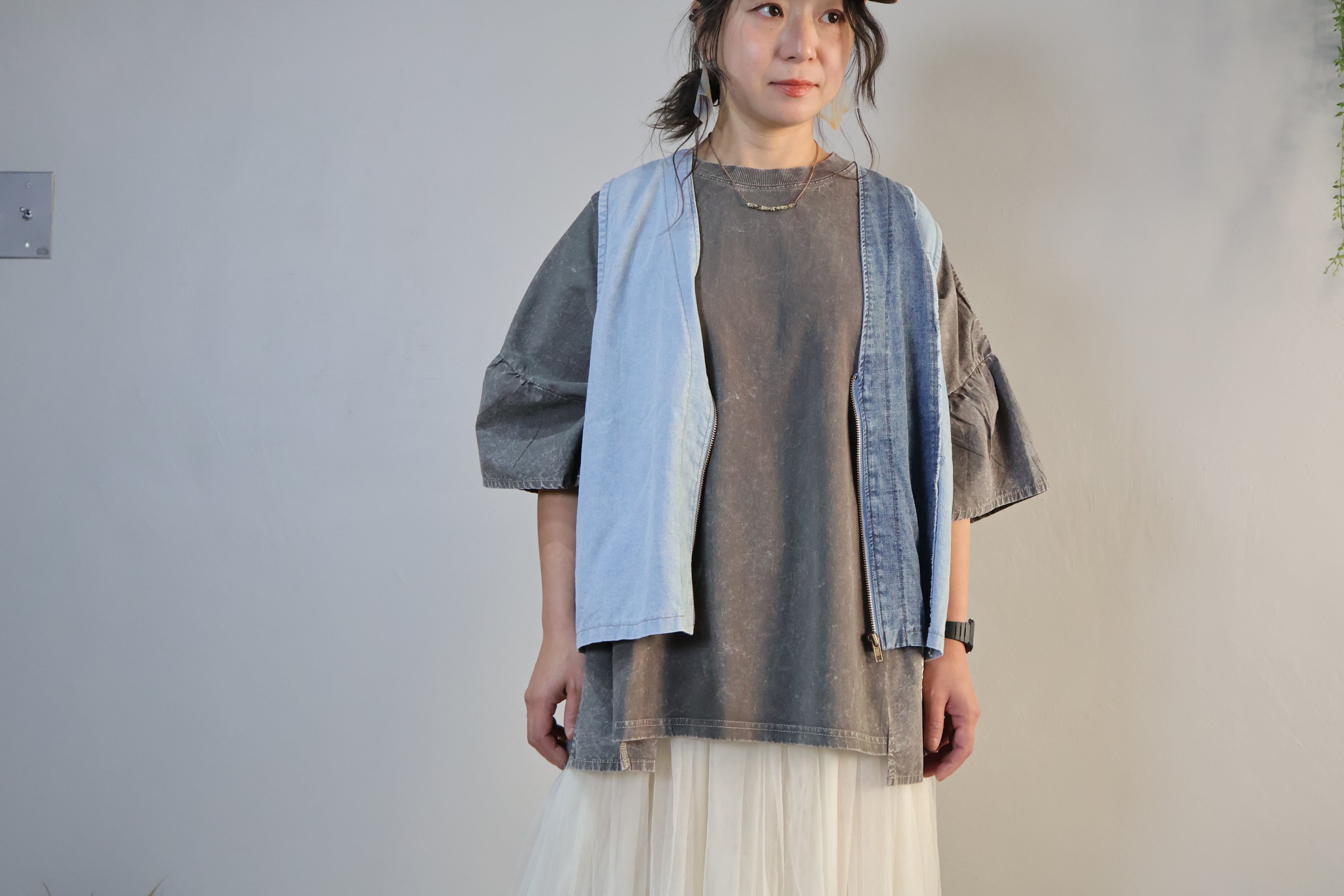 デニムケミカル加工切り替えVベストです。