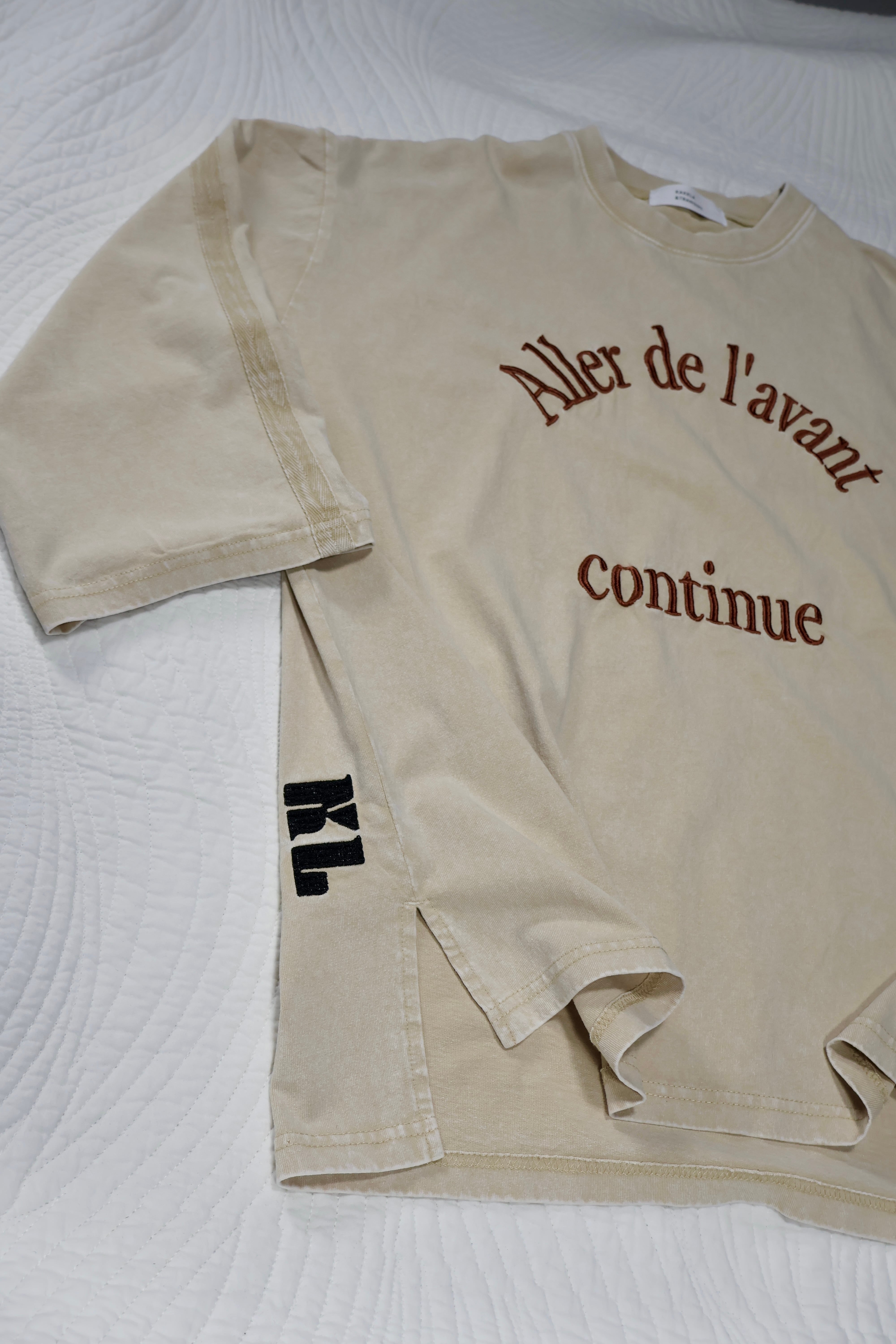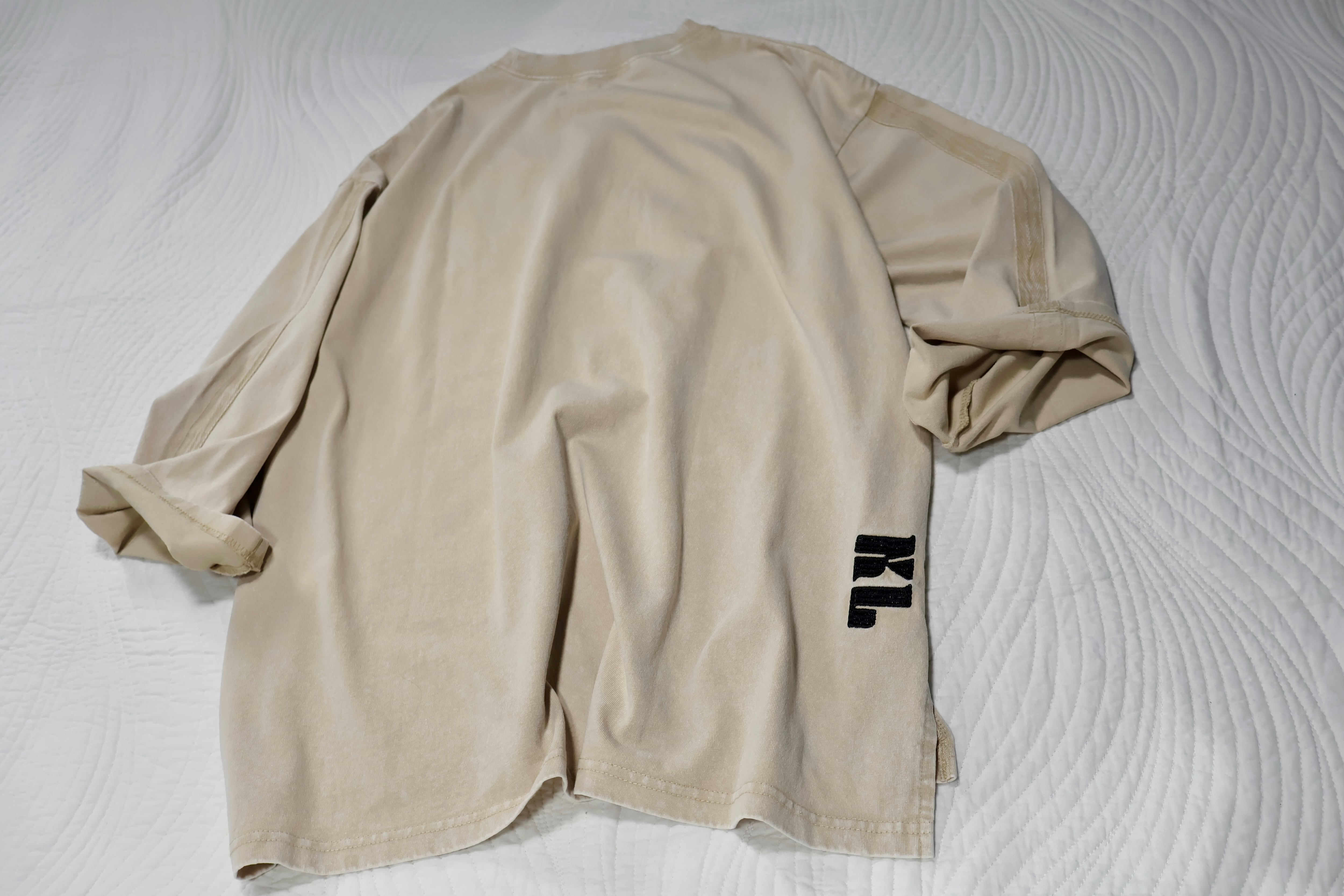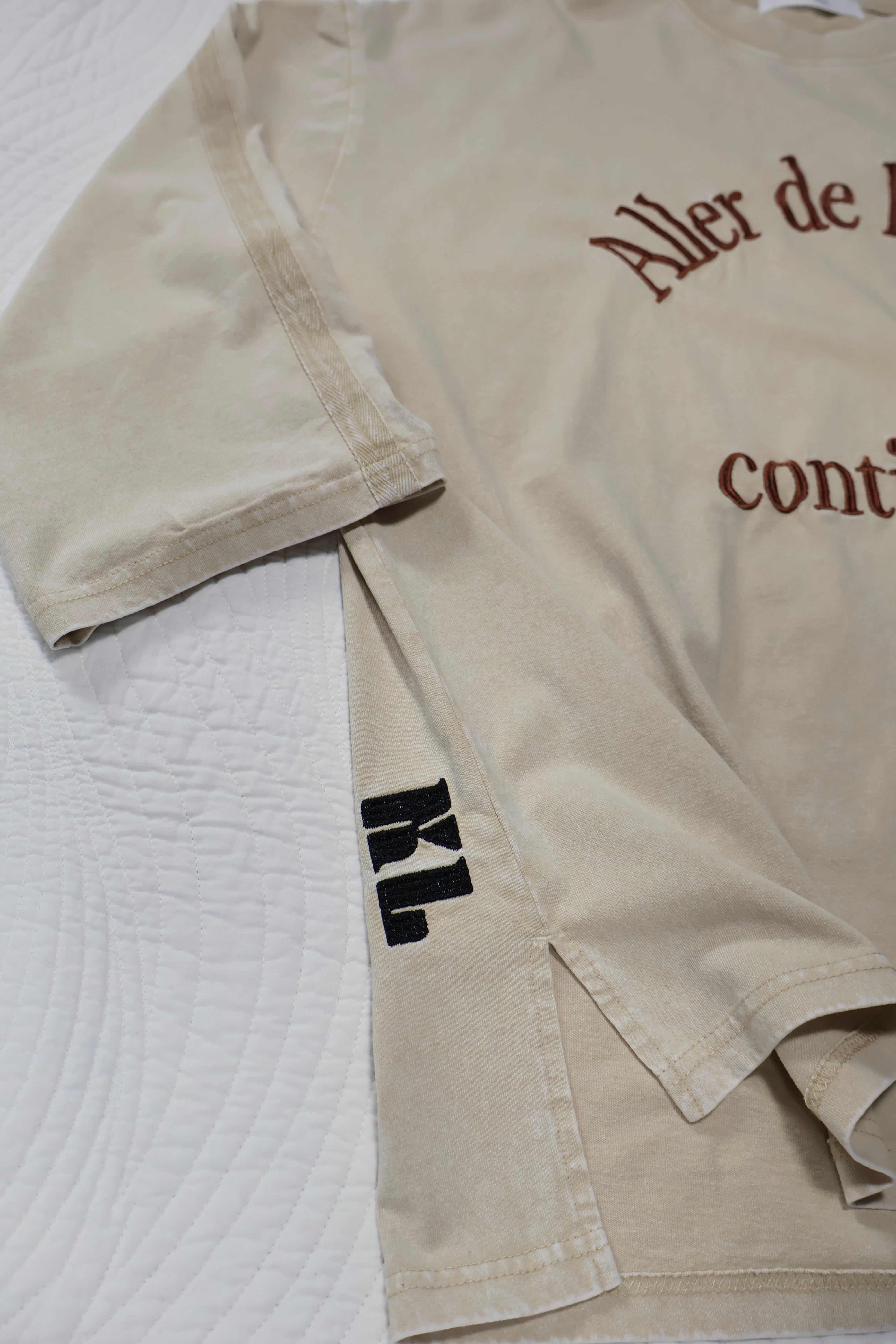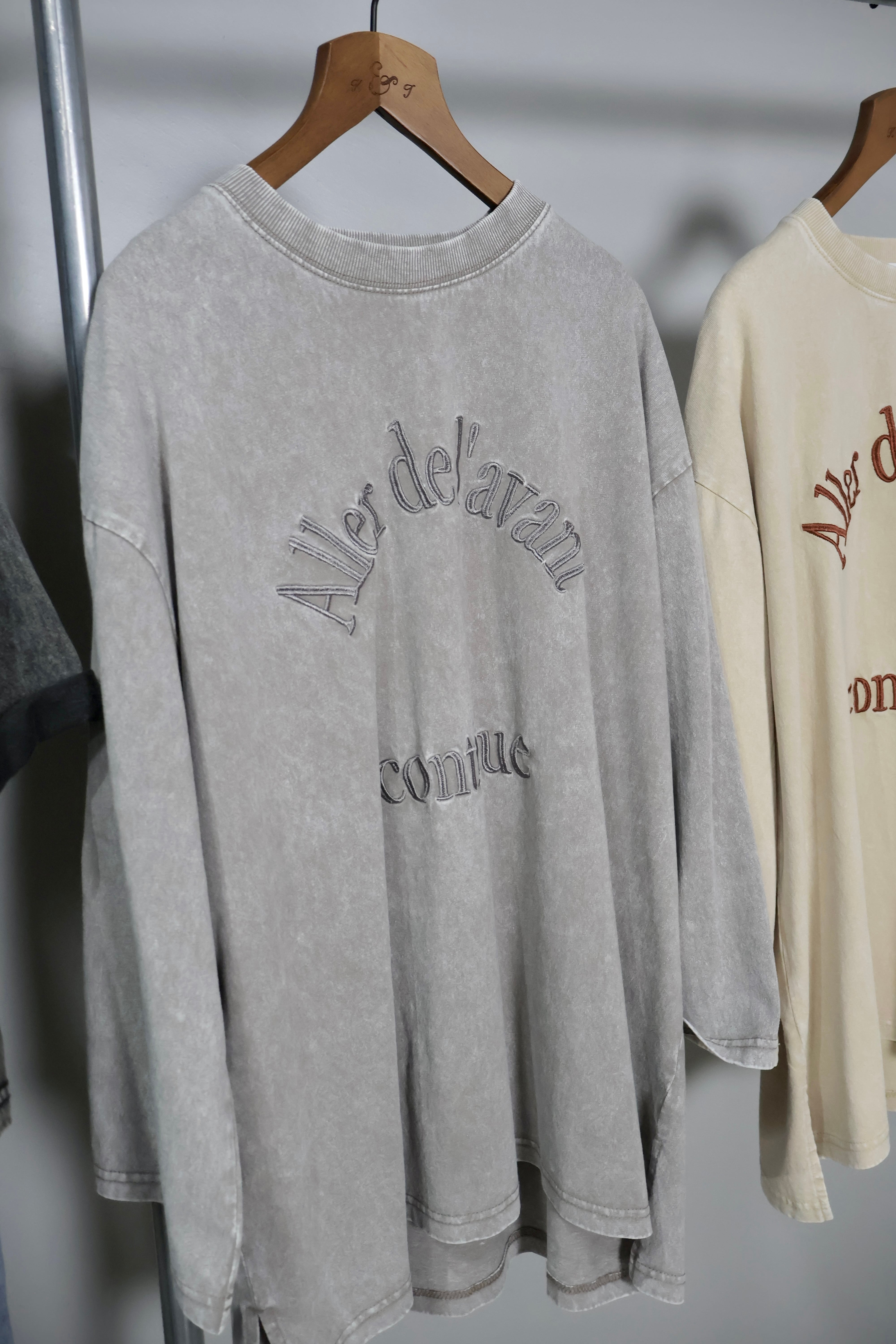 ピグメント加工刺繍ロゴクルー7分袖です。