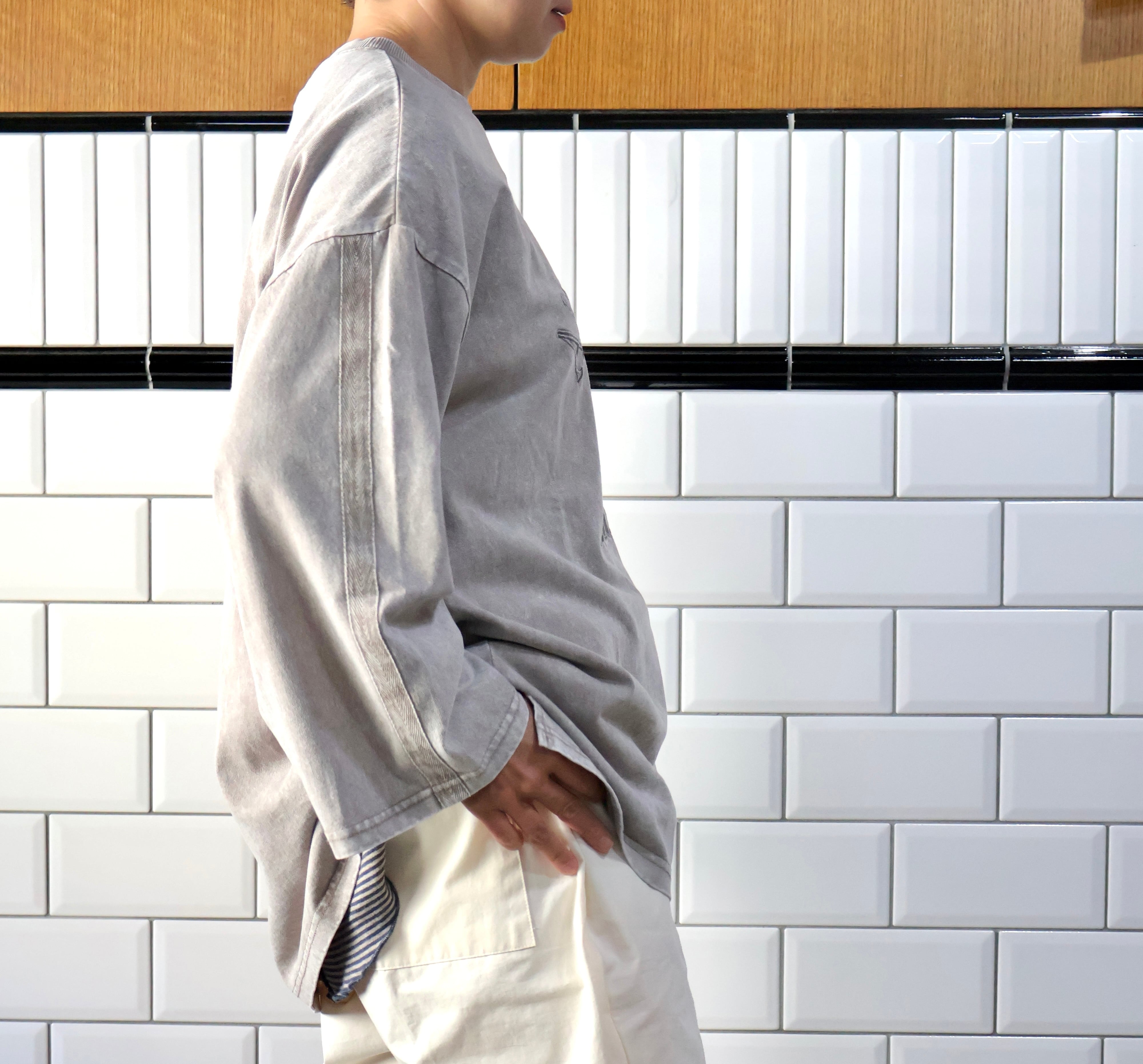 NEW!ピグメント加工刺繍ロゴクルー7分袖【12505-253-10】2025SS