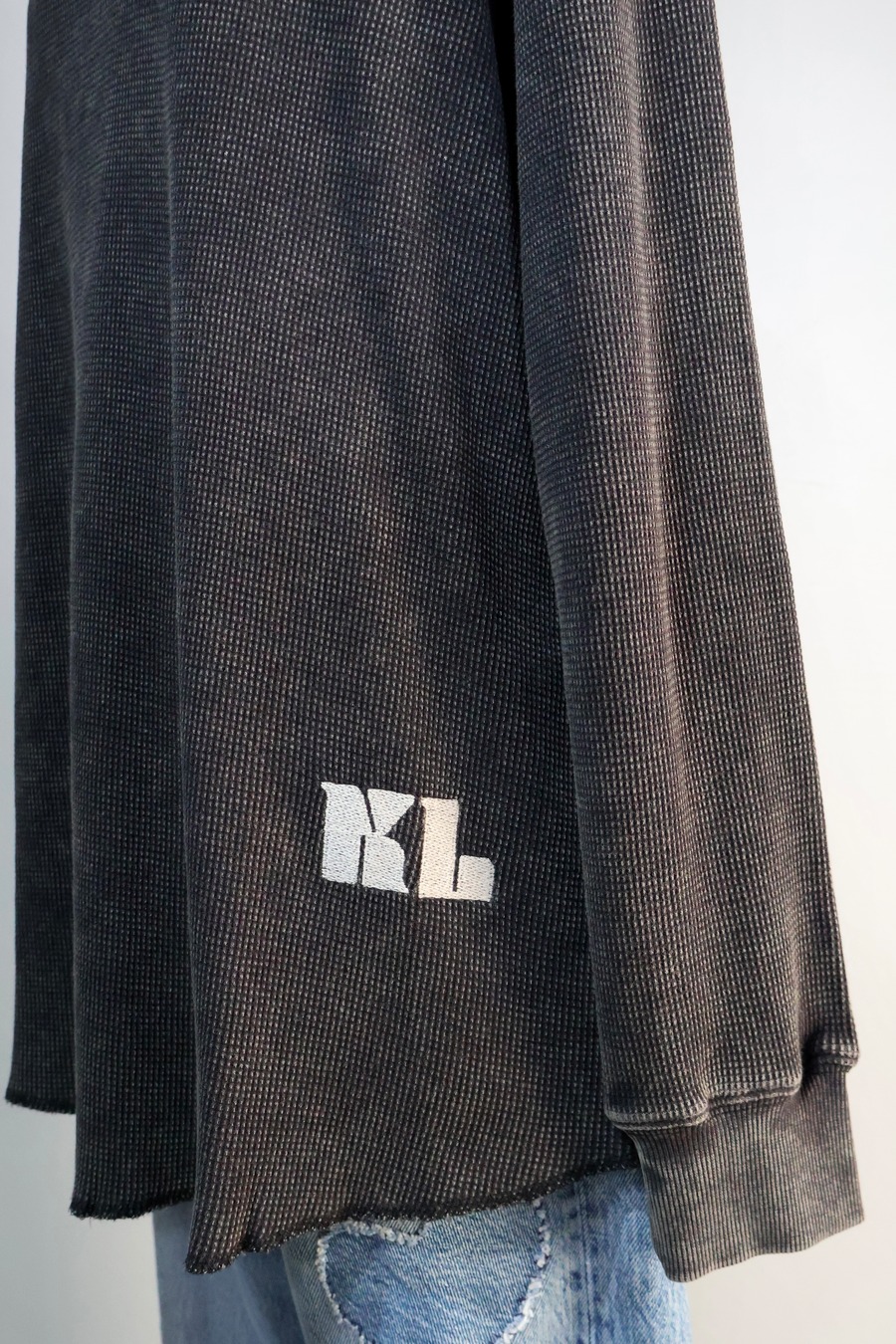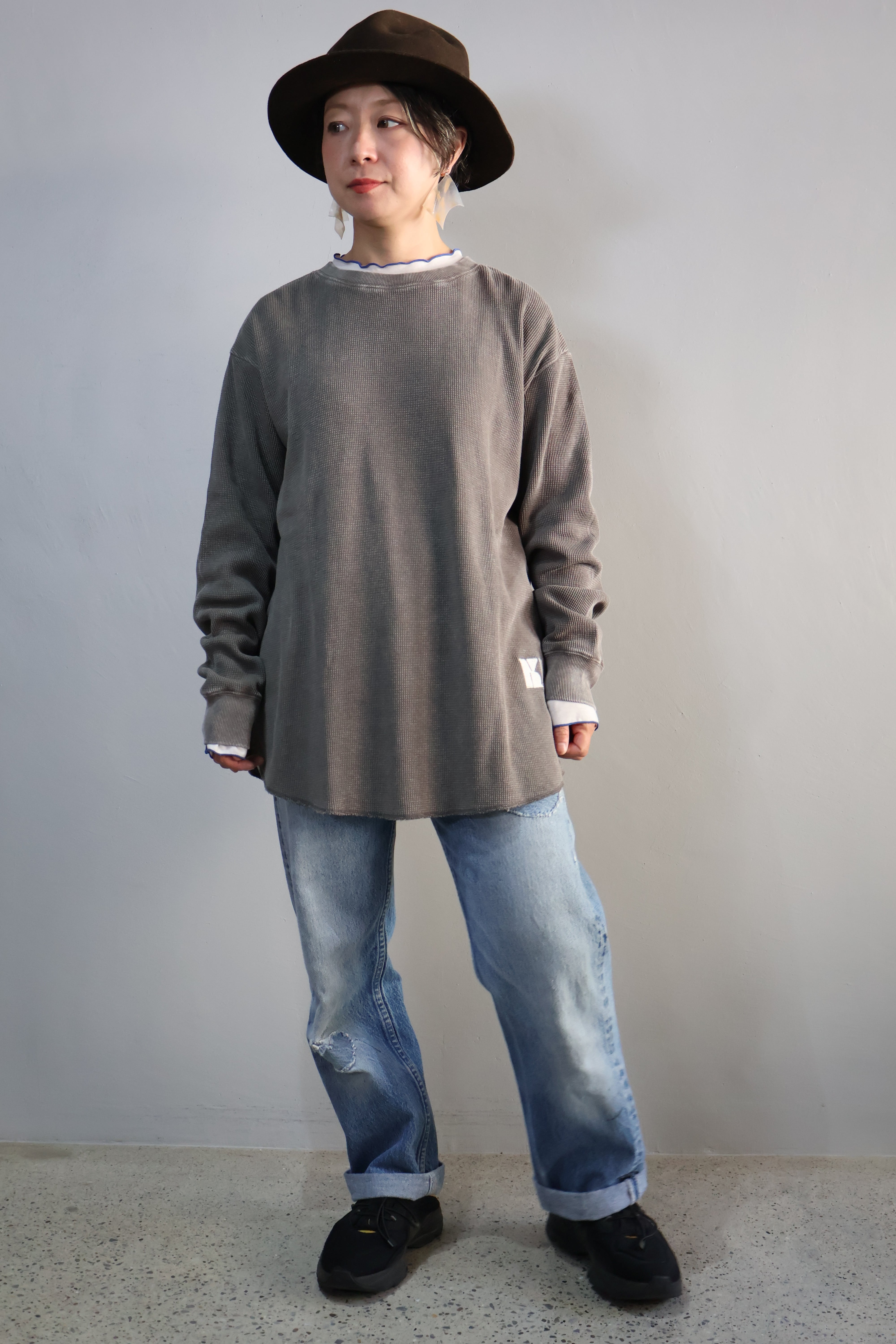 ワッフルピグメント加工クルー長袖です。