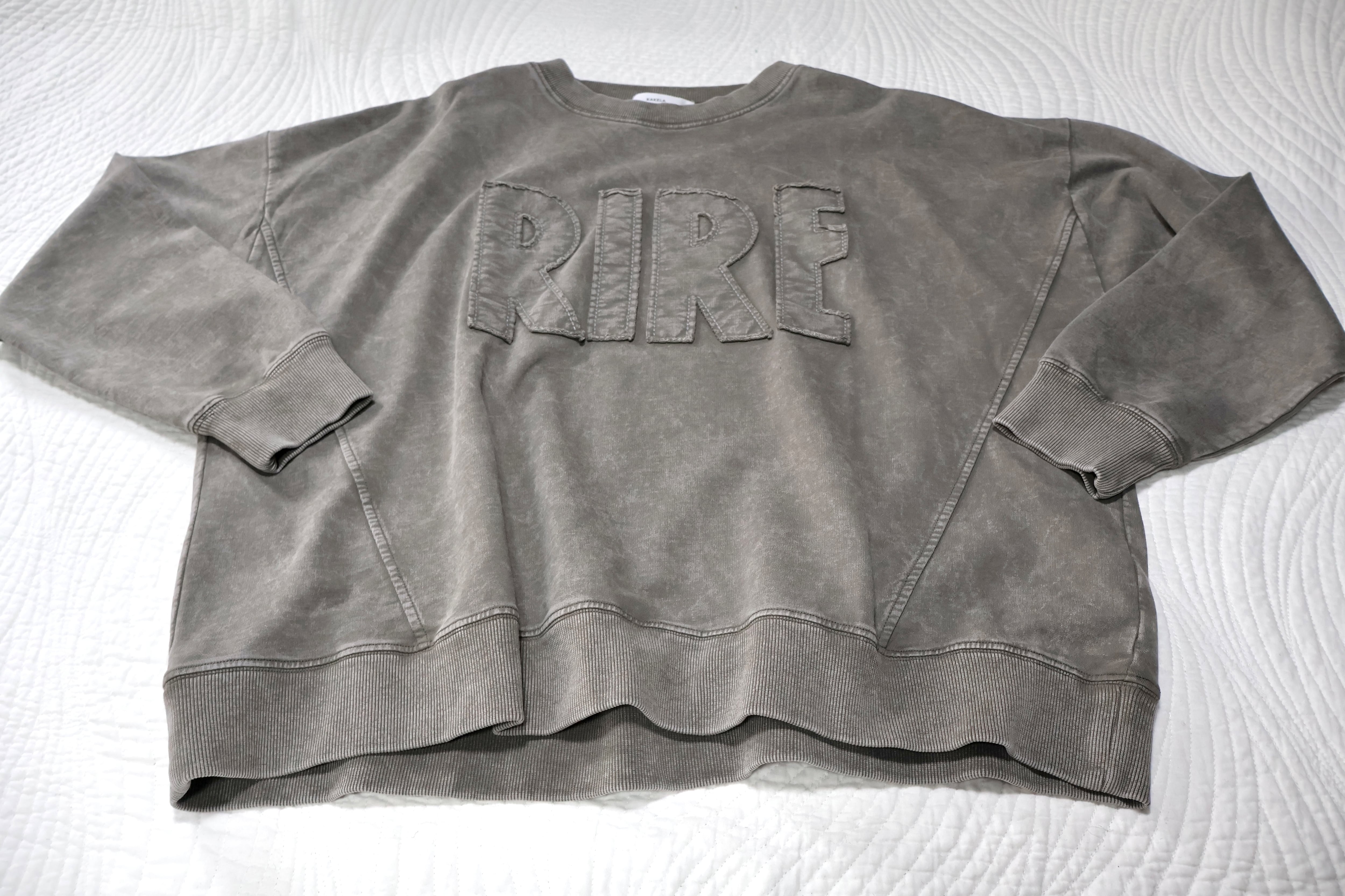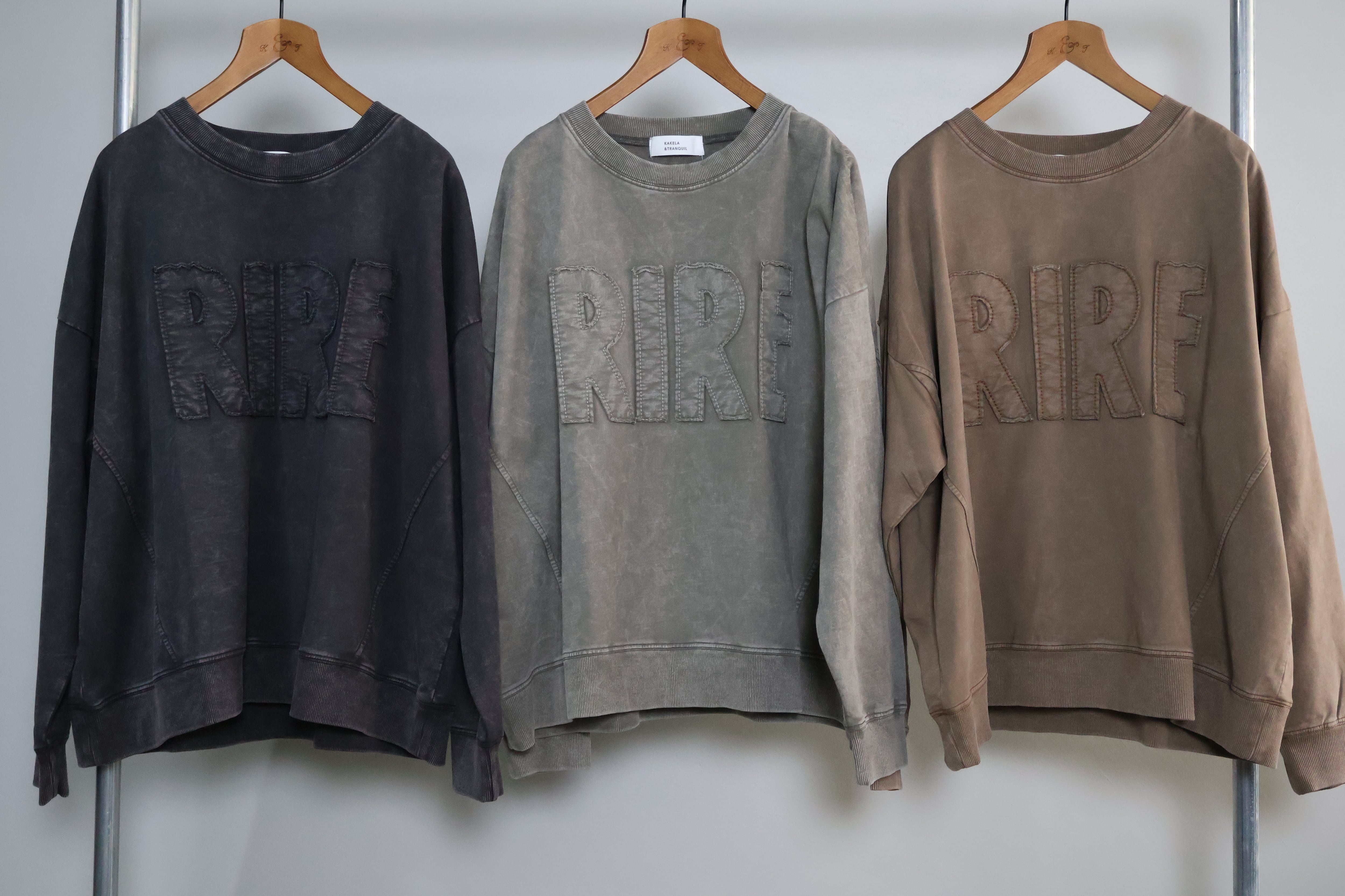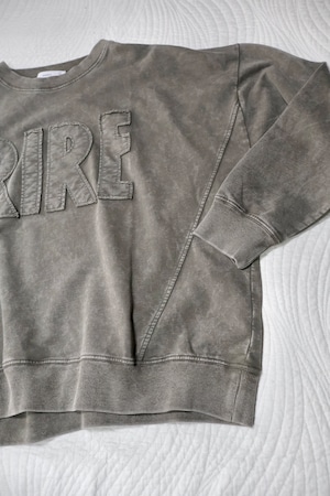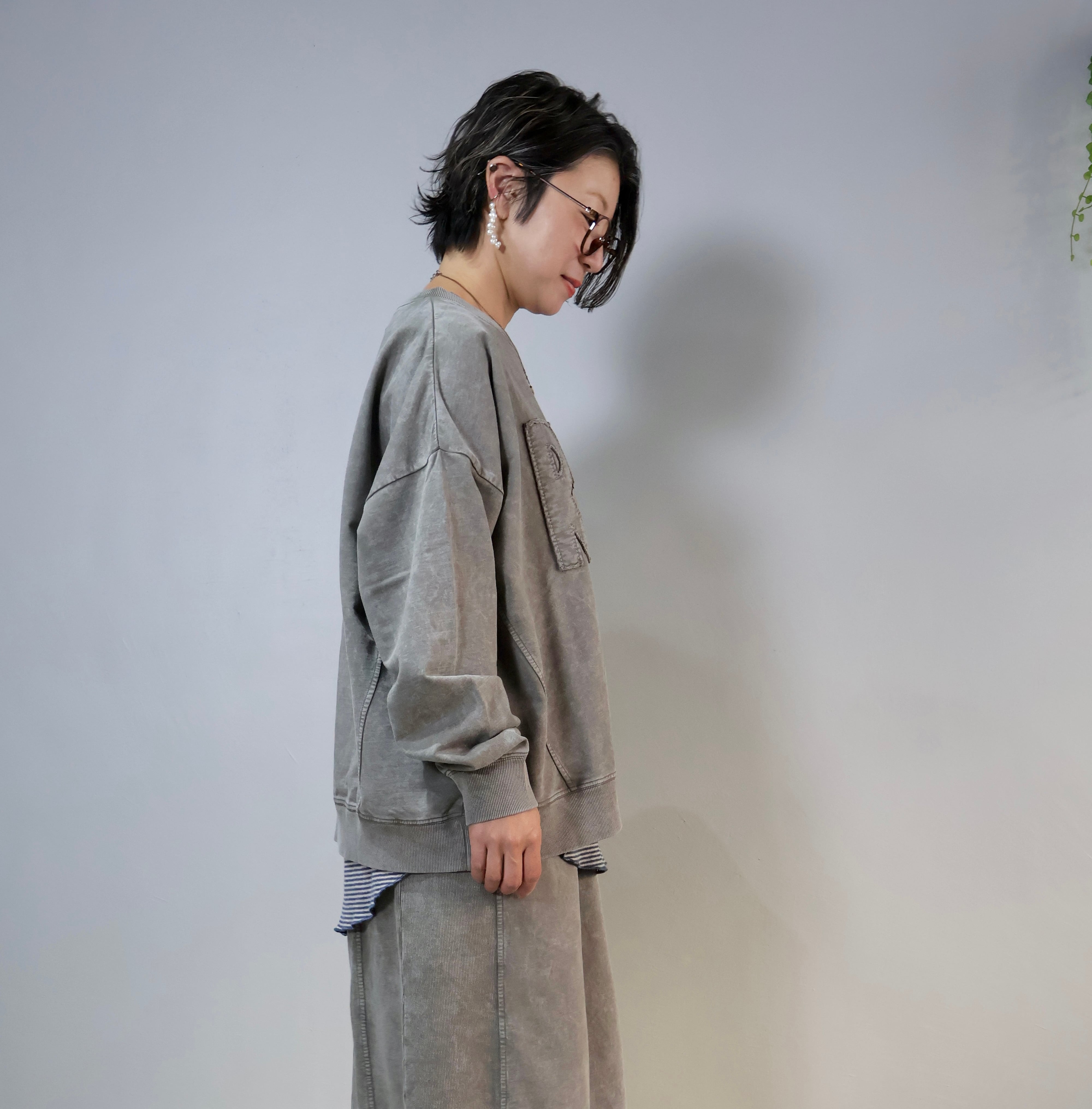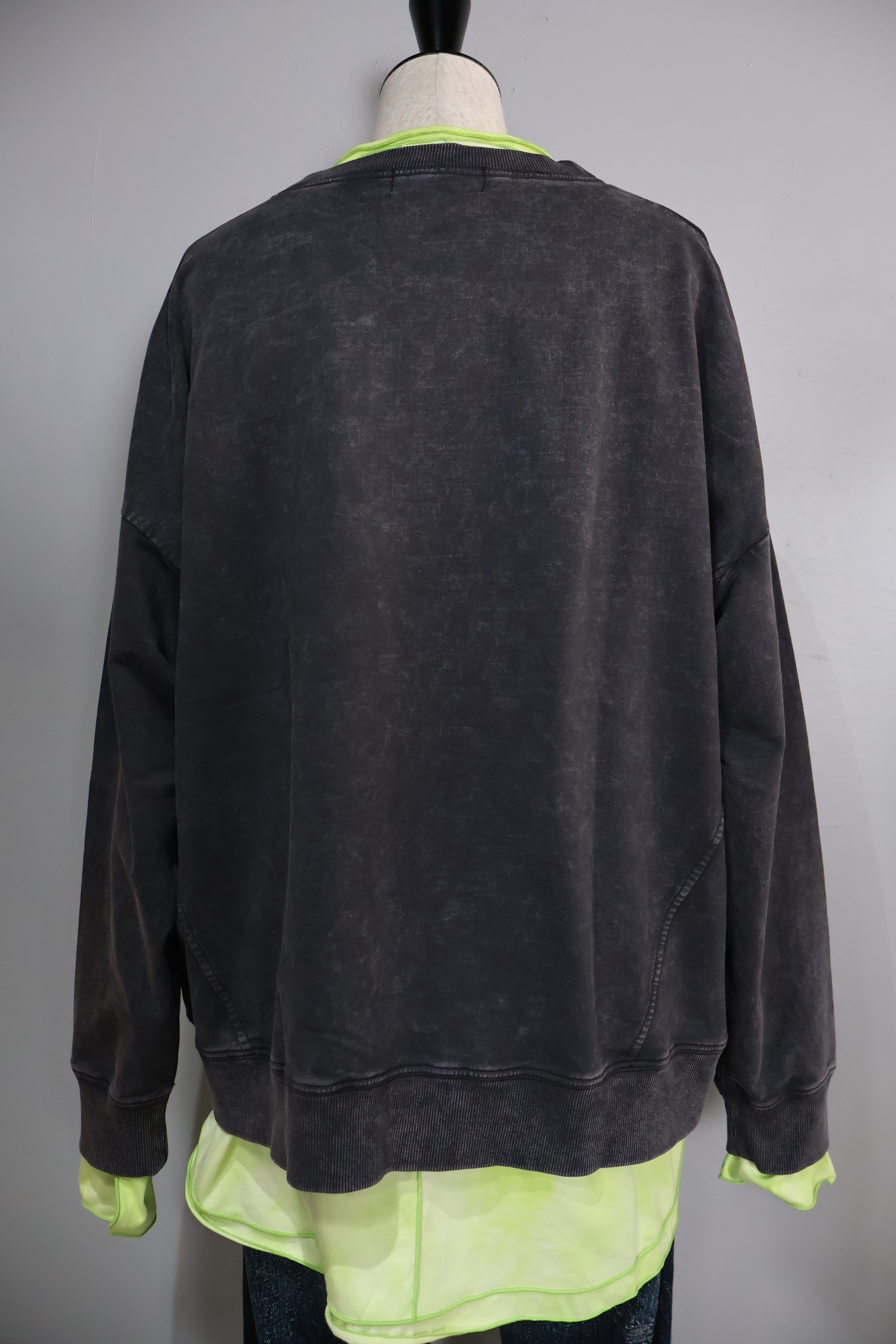 加工感とたたきつけロゴがインパクトのあるスウェットです。