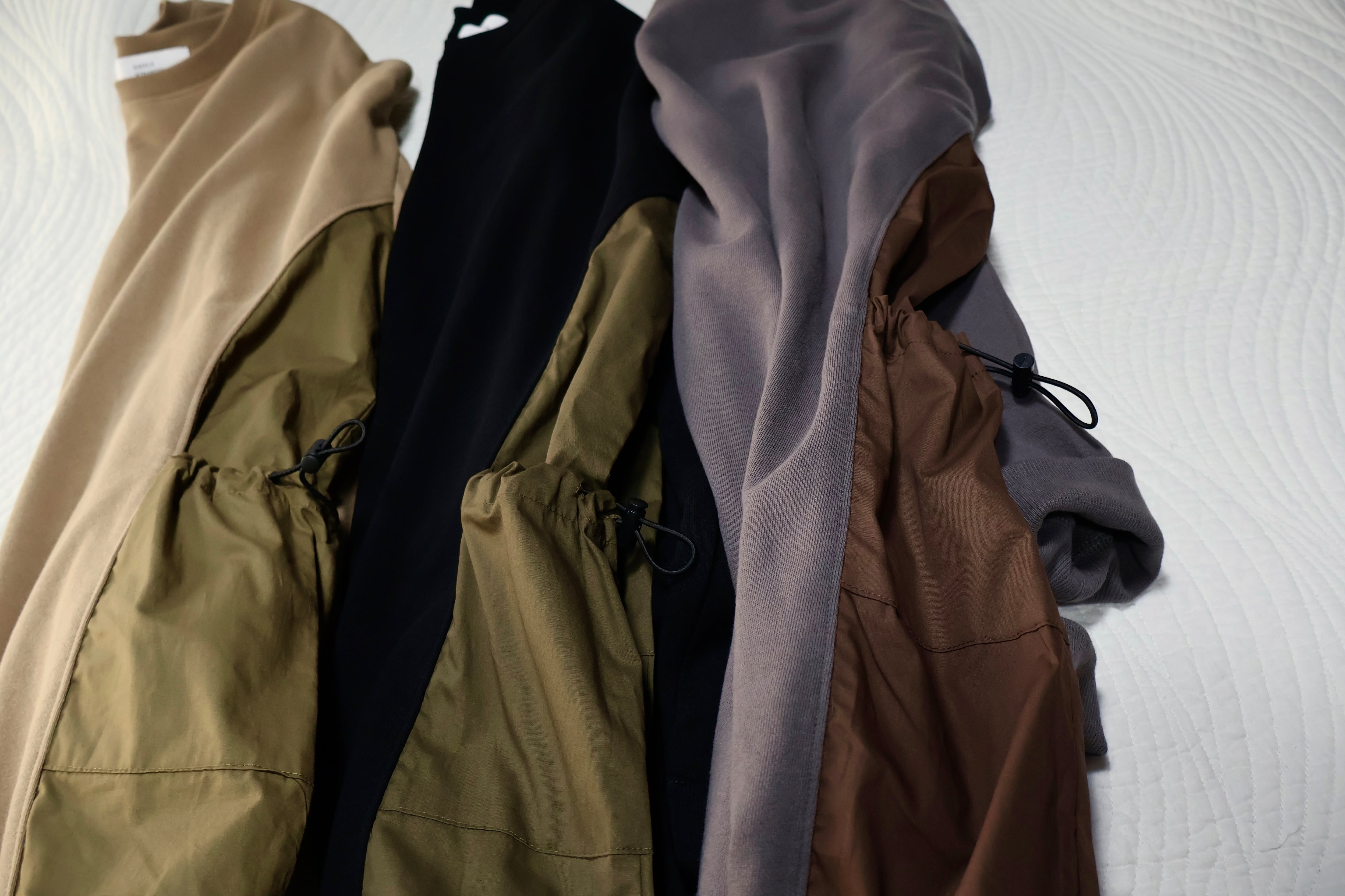 脇の切り替えが布帛で配色になっているのがアクセントになっています。