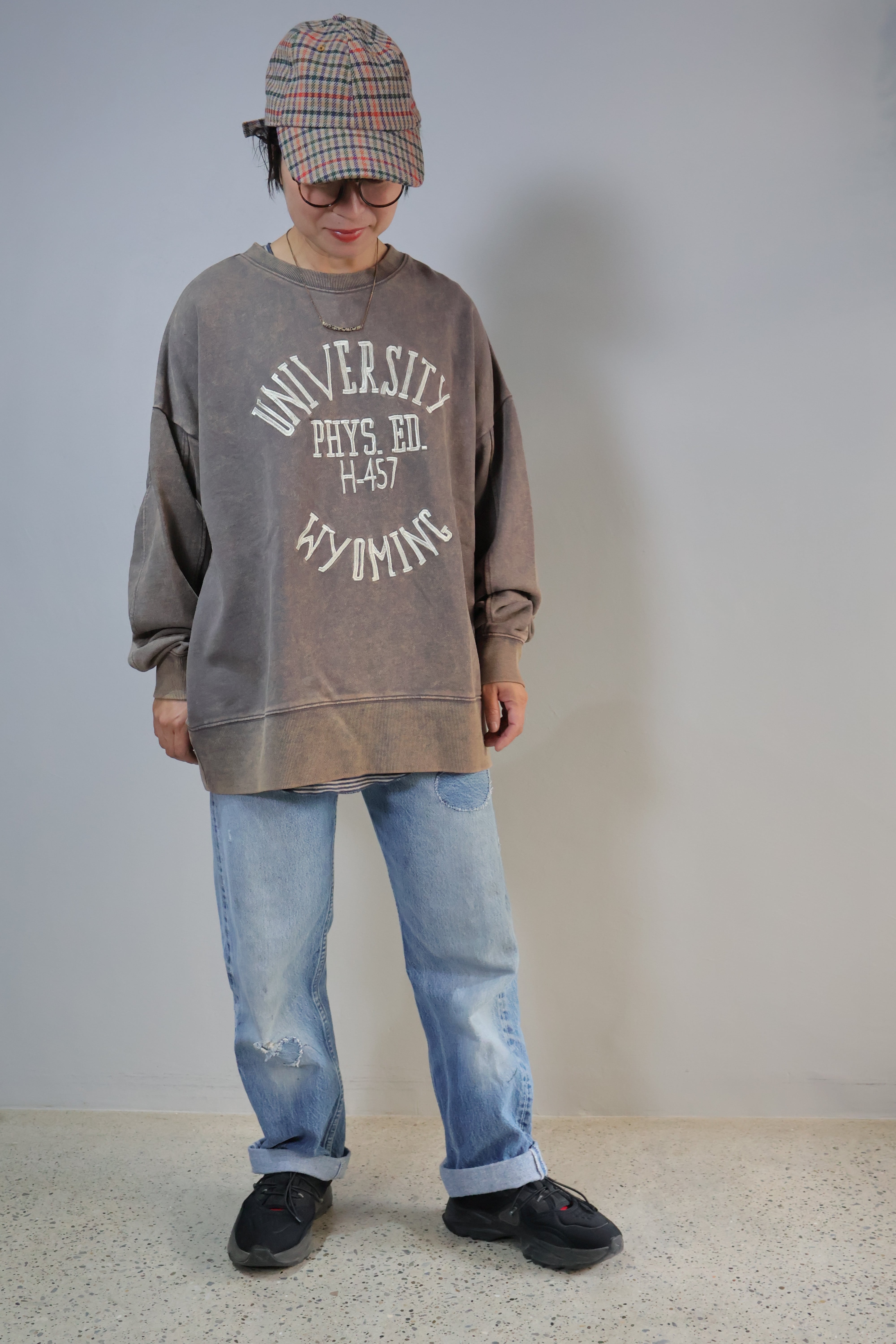 裏毛ビンテージ加工ロング刺繍ロゴです。