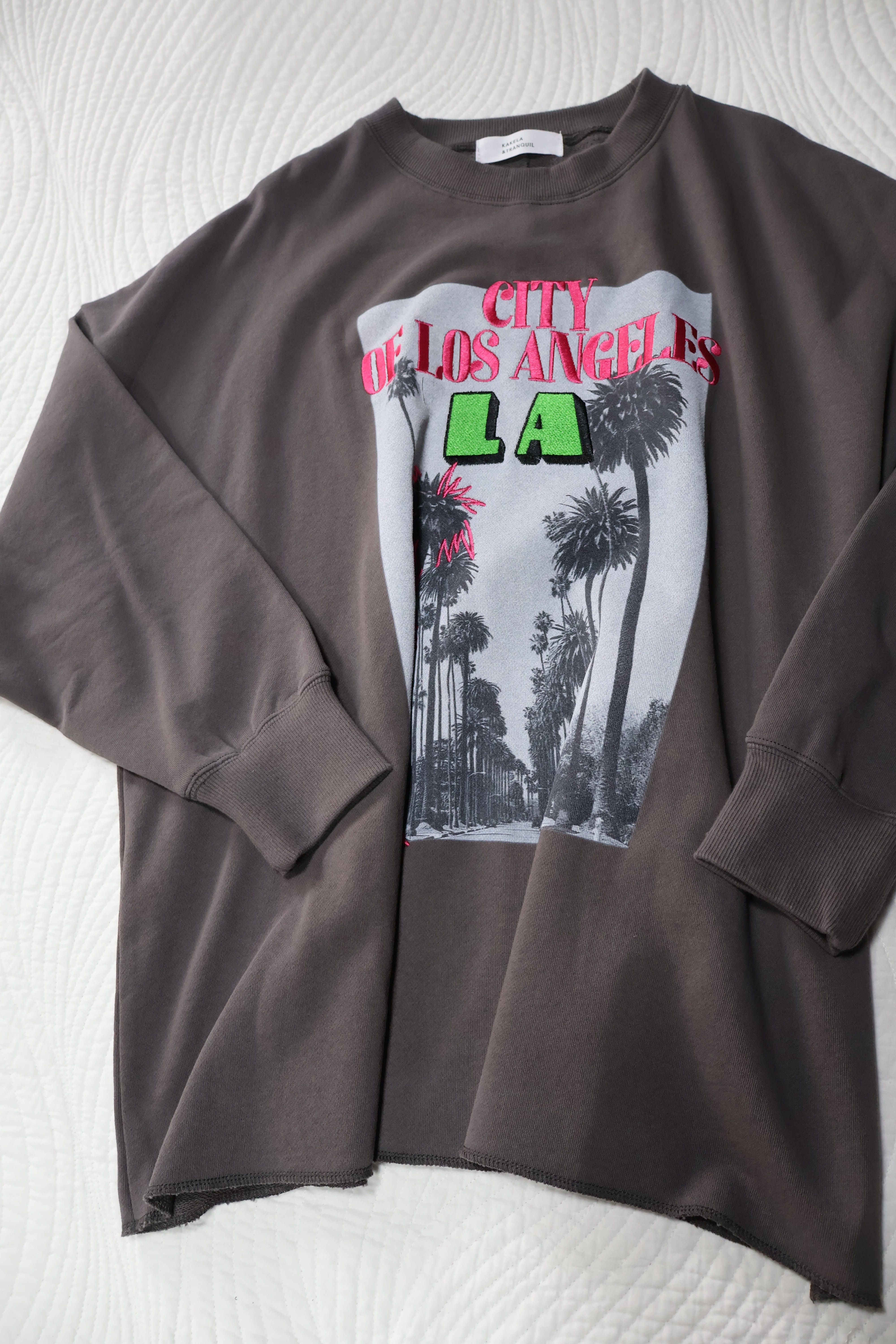裏毛椰子の木転写ロゴ刺繍ワイドクルーです。