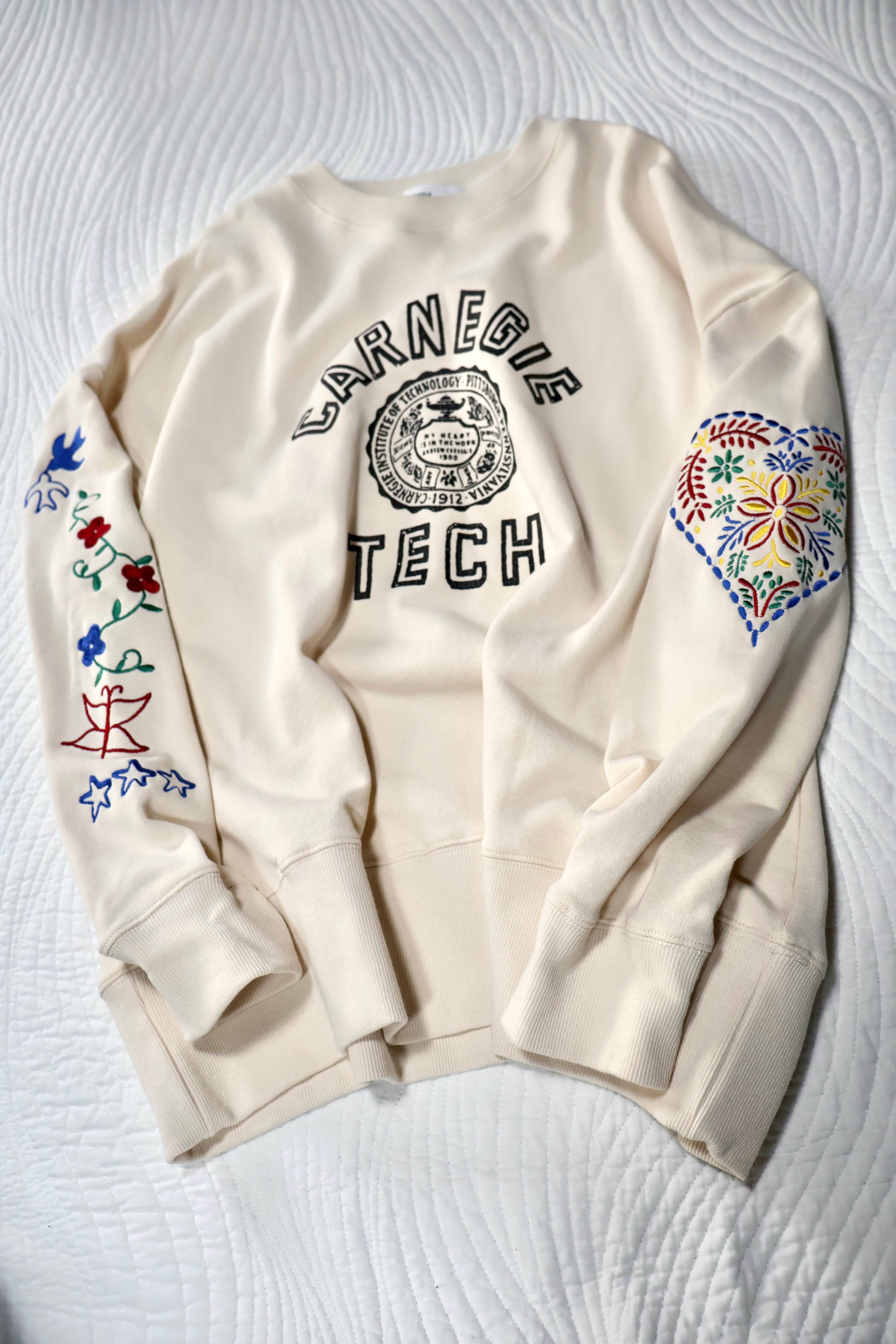 裏毛カレッジプリント袖刺繍スウェット【12509-335-10】2025AW