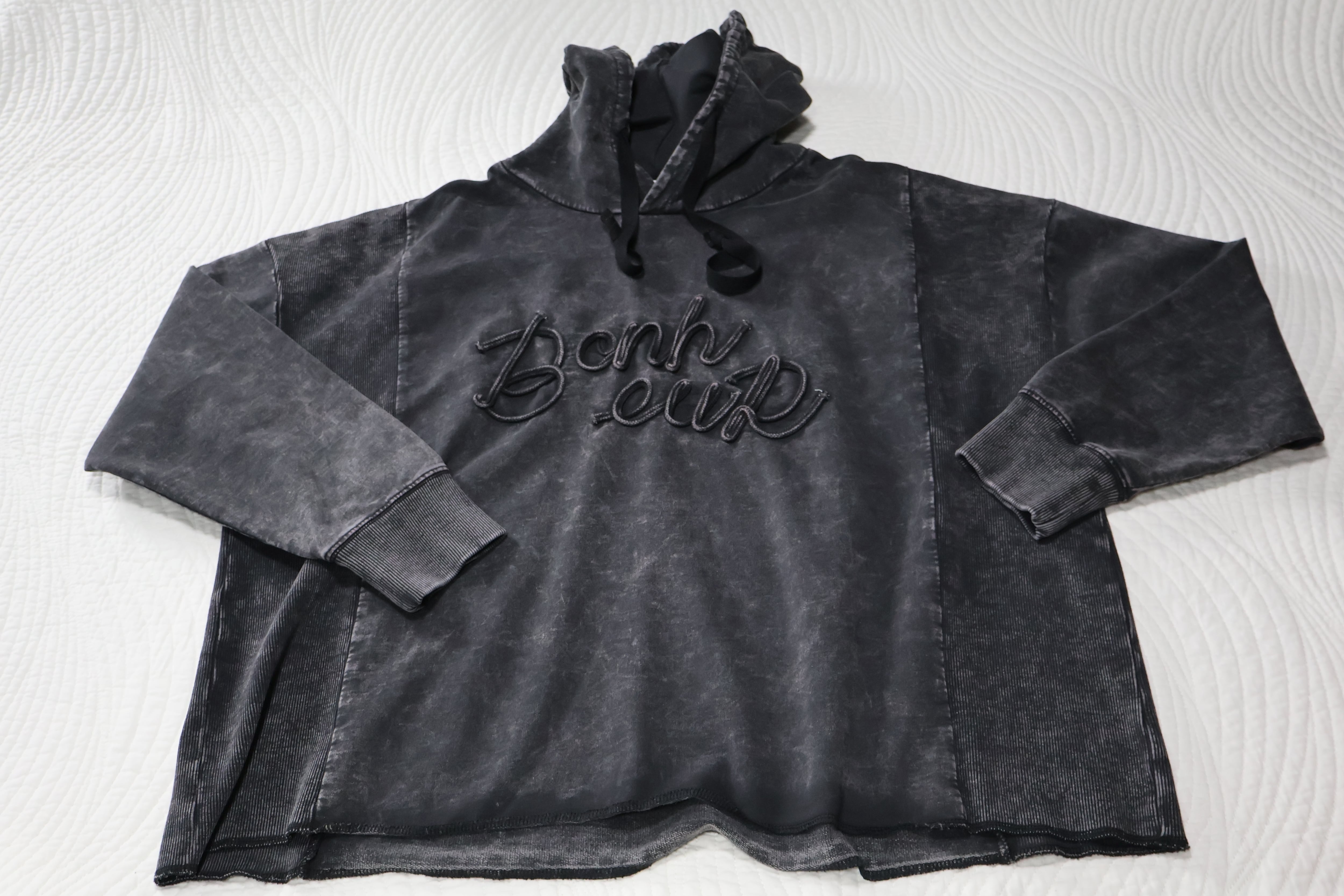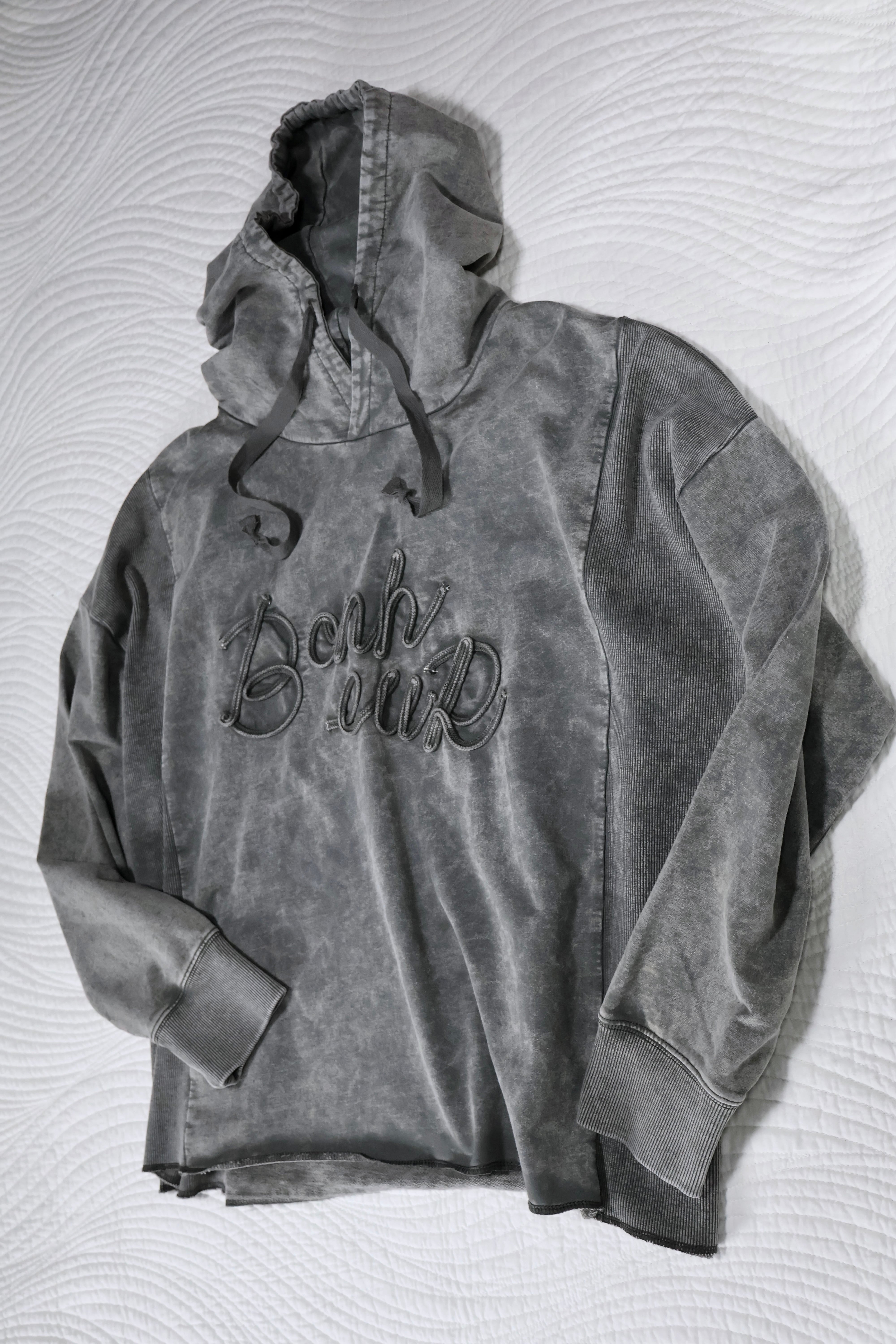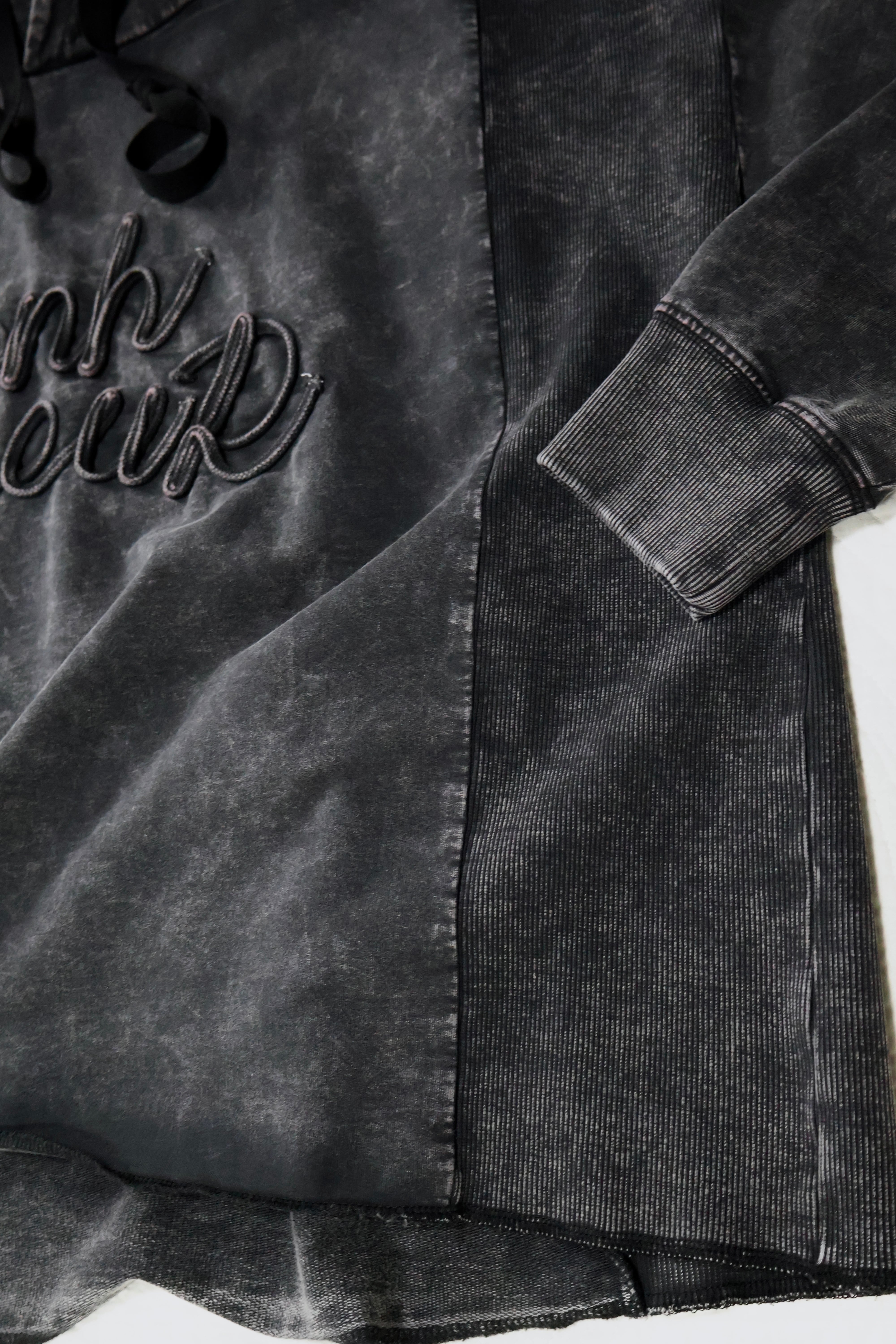 加工感が入ったロゴのコード刺繍たポイントのフーディー!