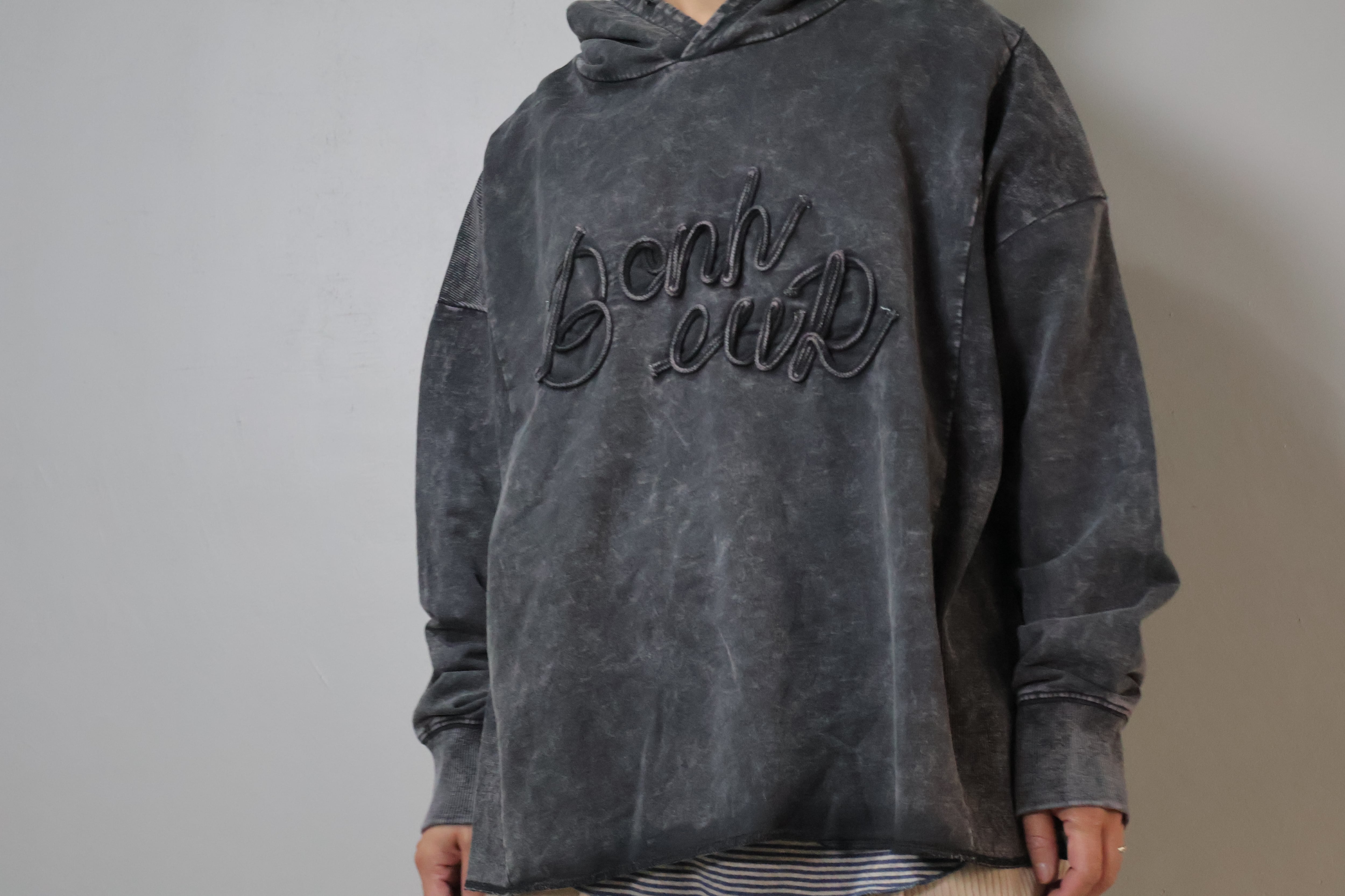 裏毛ピグメントコード刺繍ロゴフーディーです。