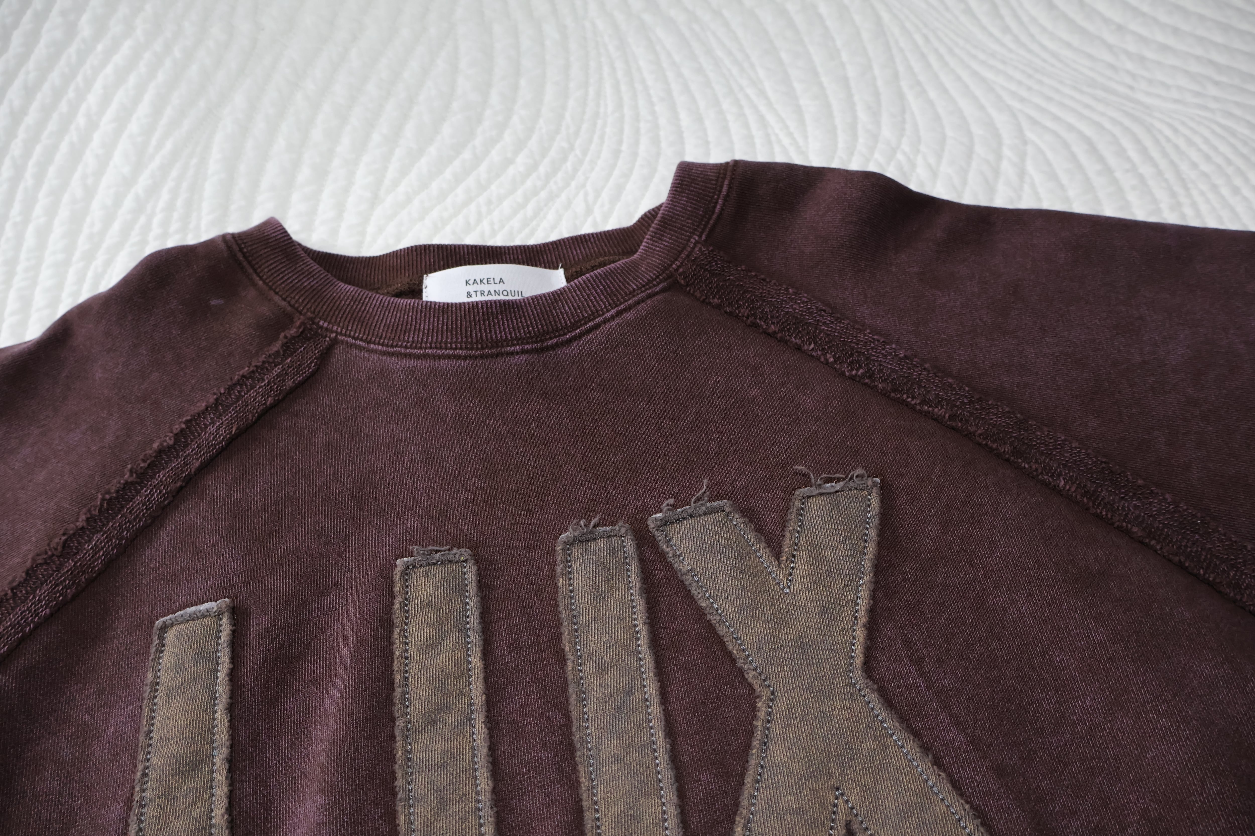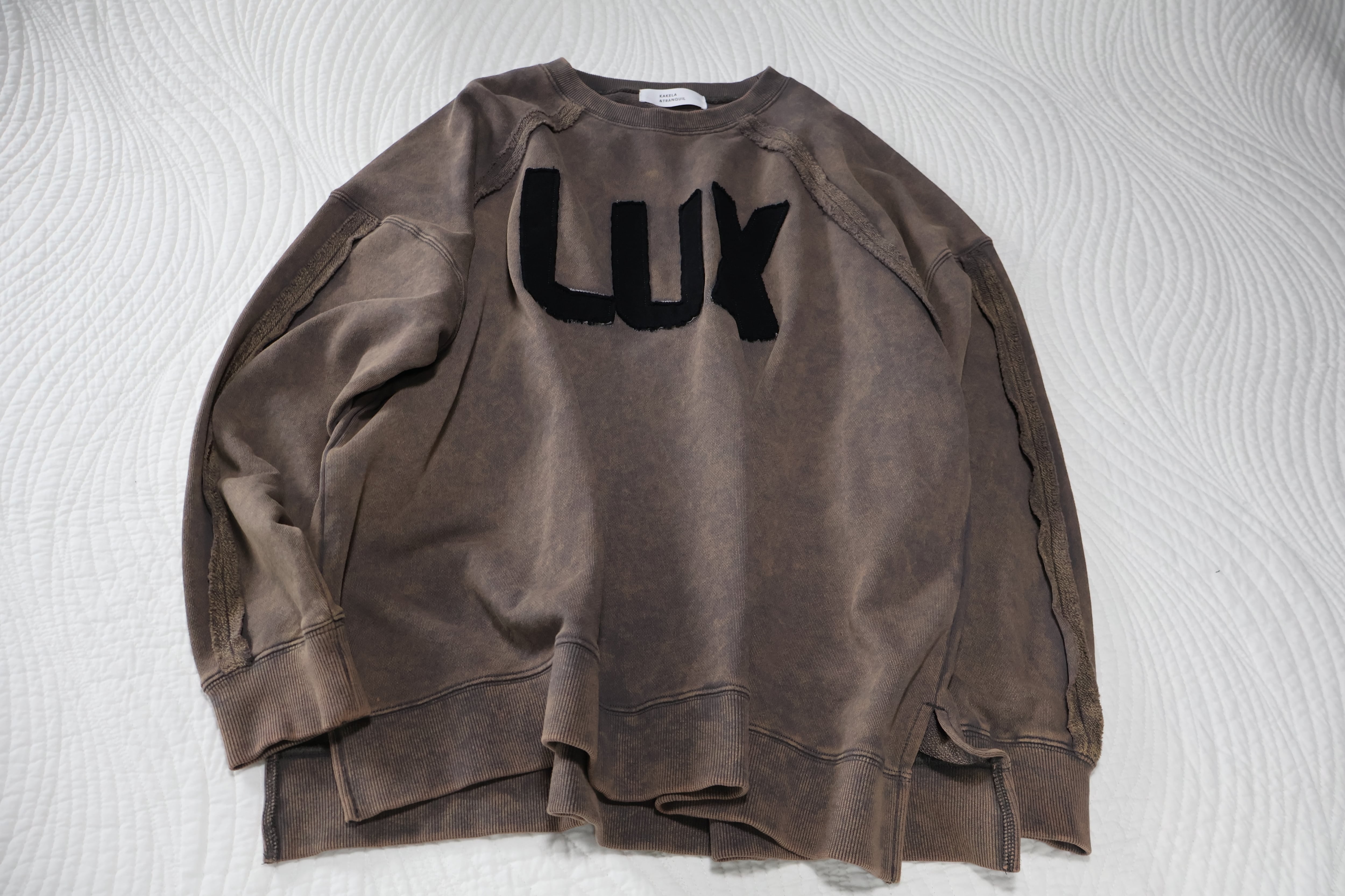 裏毛ビンテージ加工共生地ロゴ切り替えスウェットです。