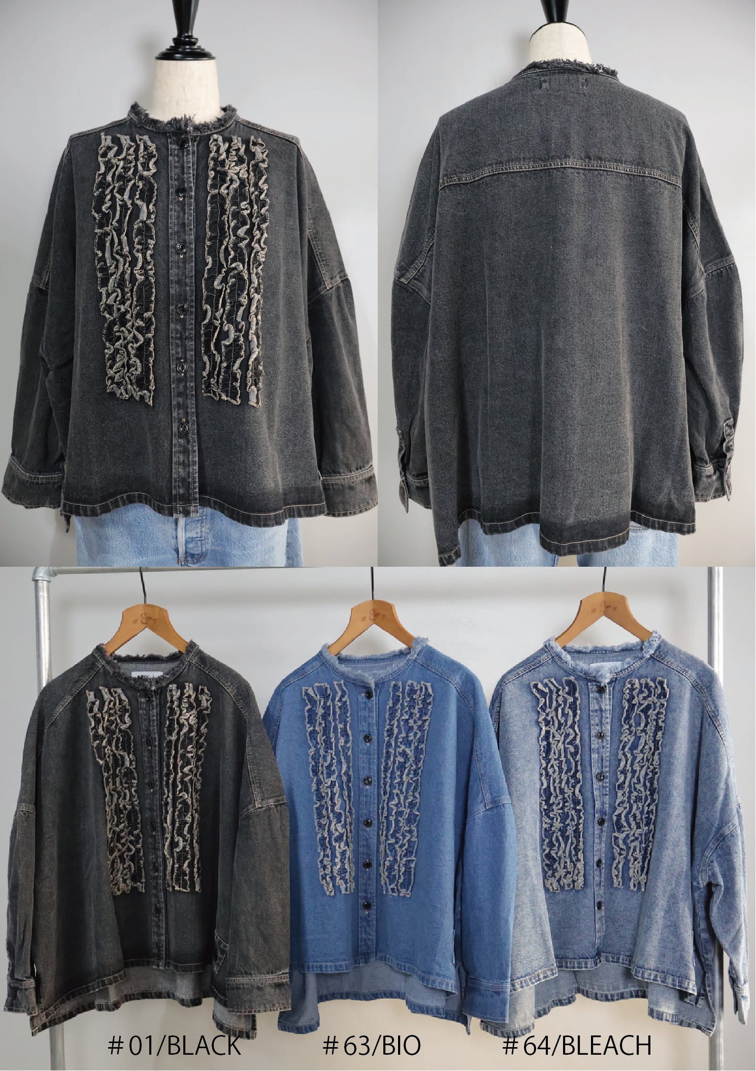 NEW!デニムケミカル加工ノーカラーフリルシャツ【12510-370-10】2026SS