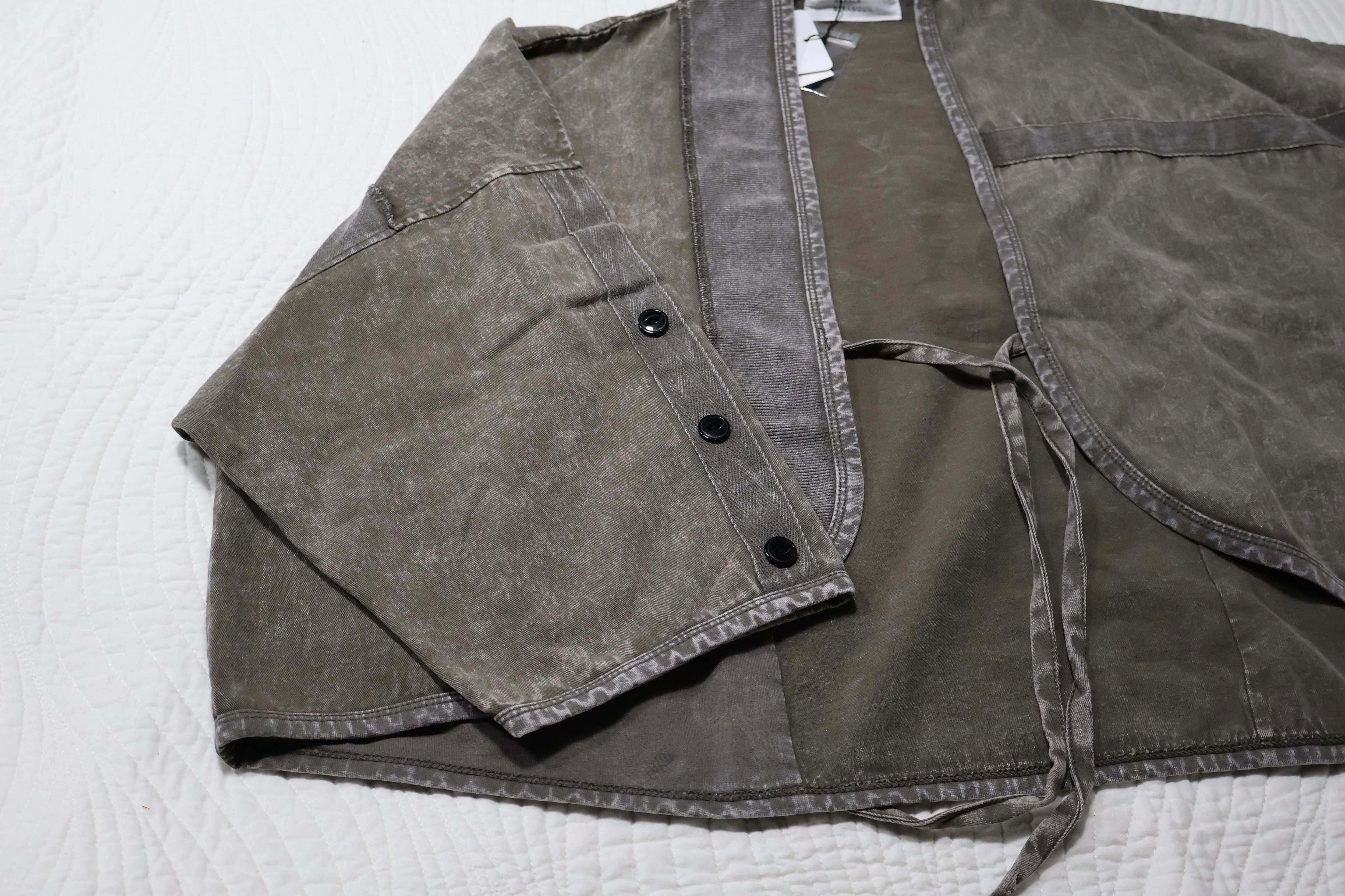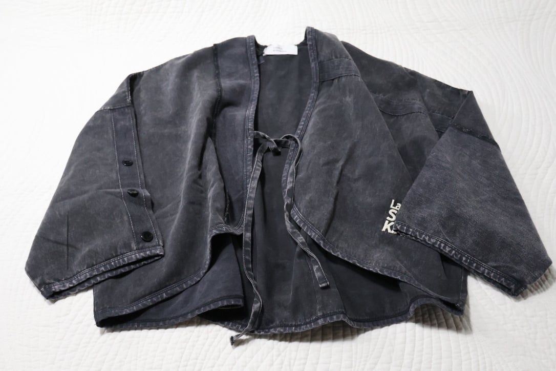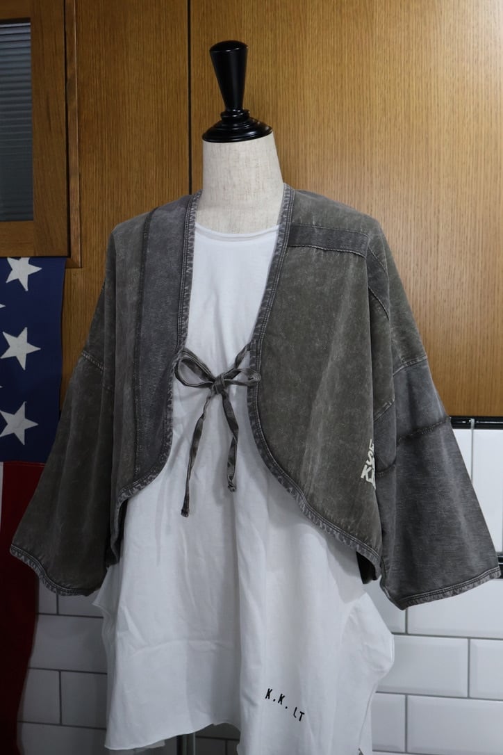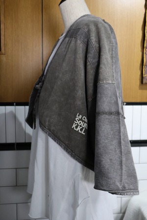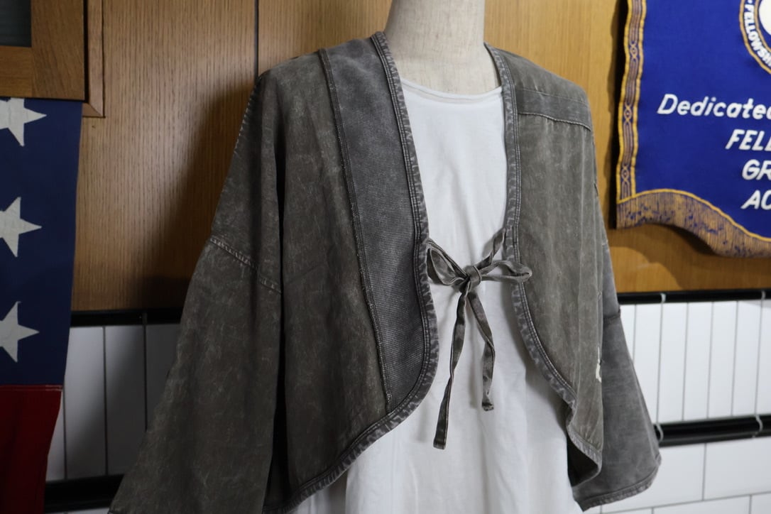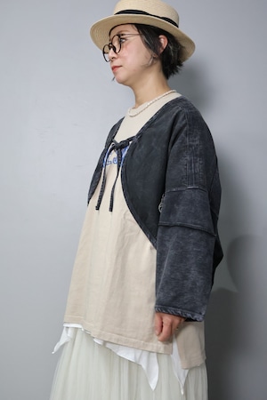 ツイルピグメント加工異素材組み合わせショートボレロです。