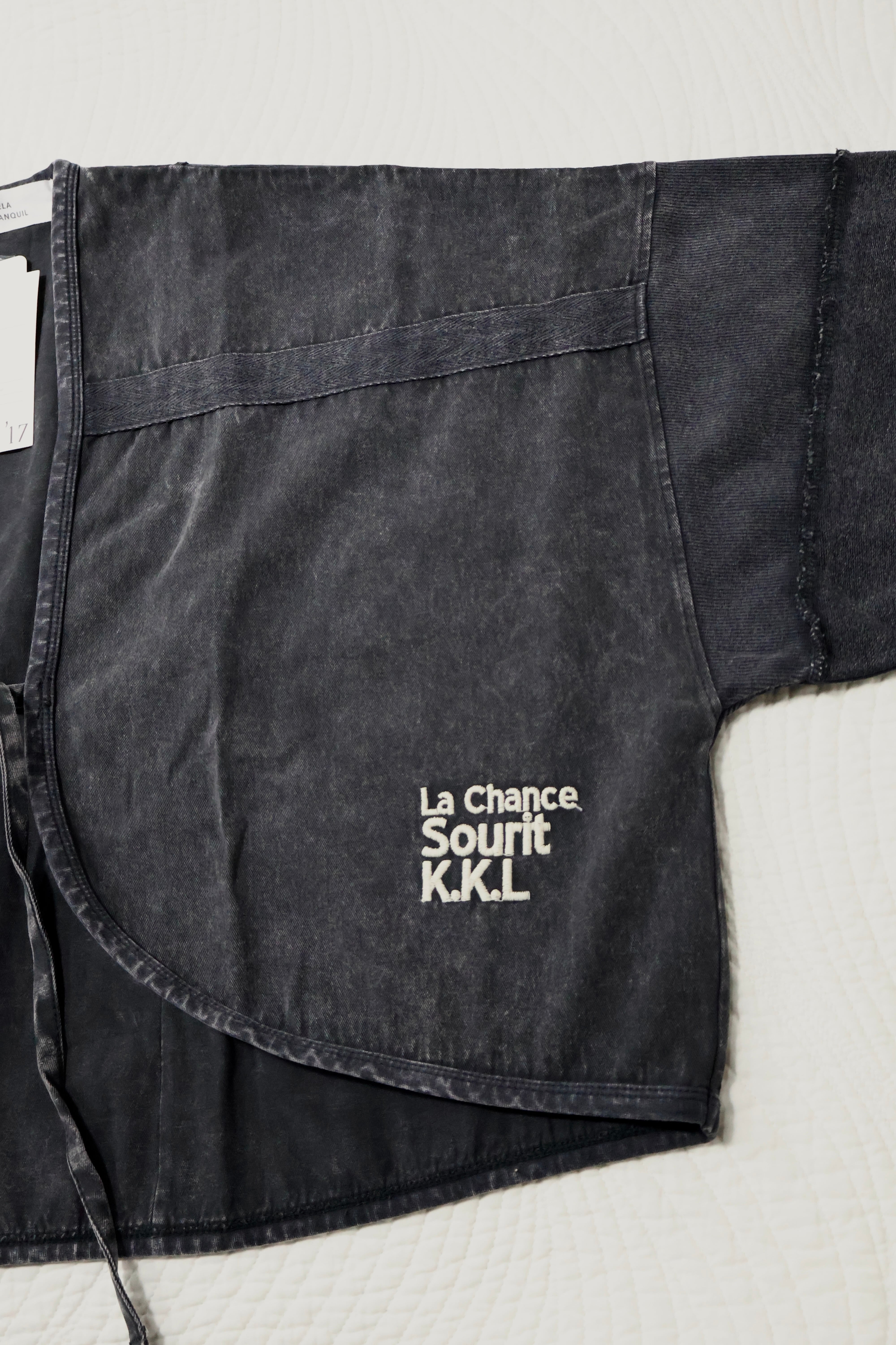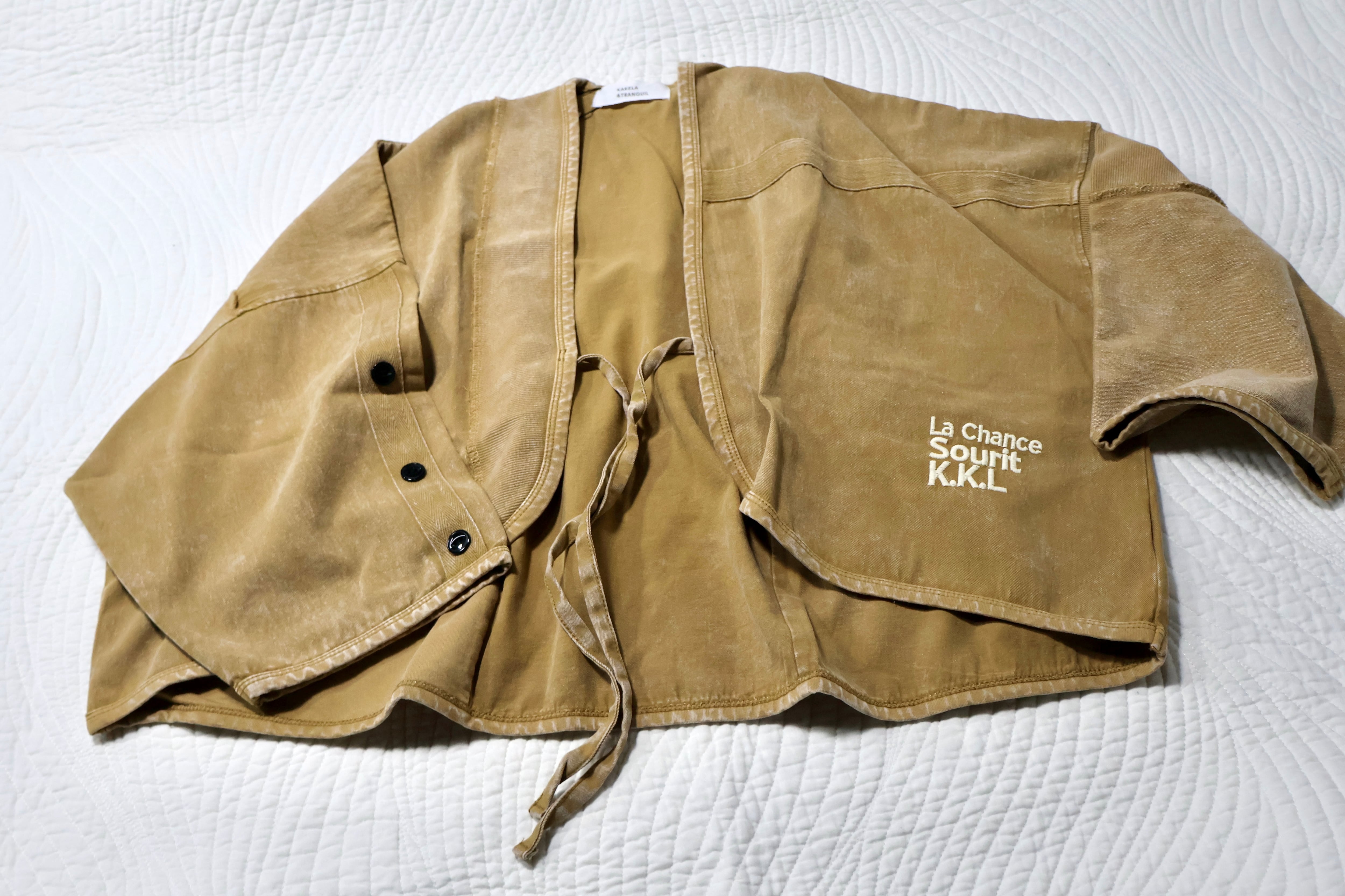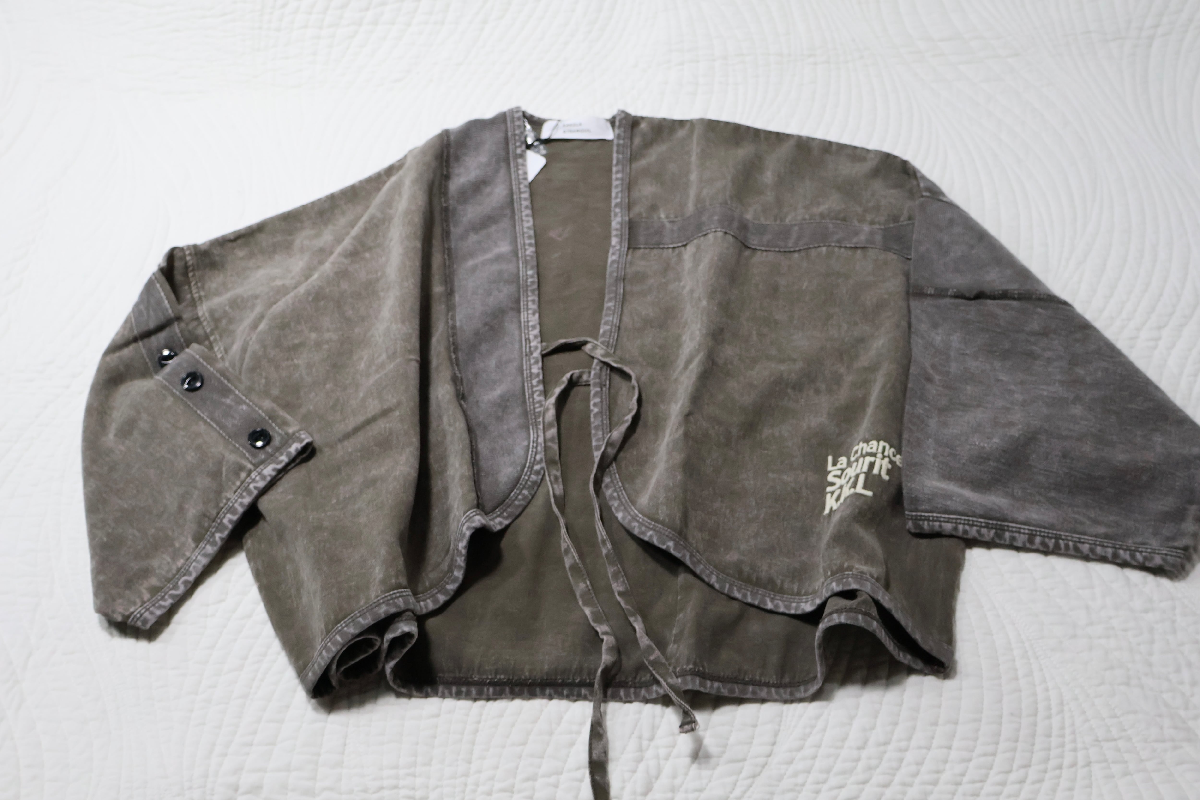 ツイルピグメント加工異素材組み合わせショートボレロです。