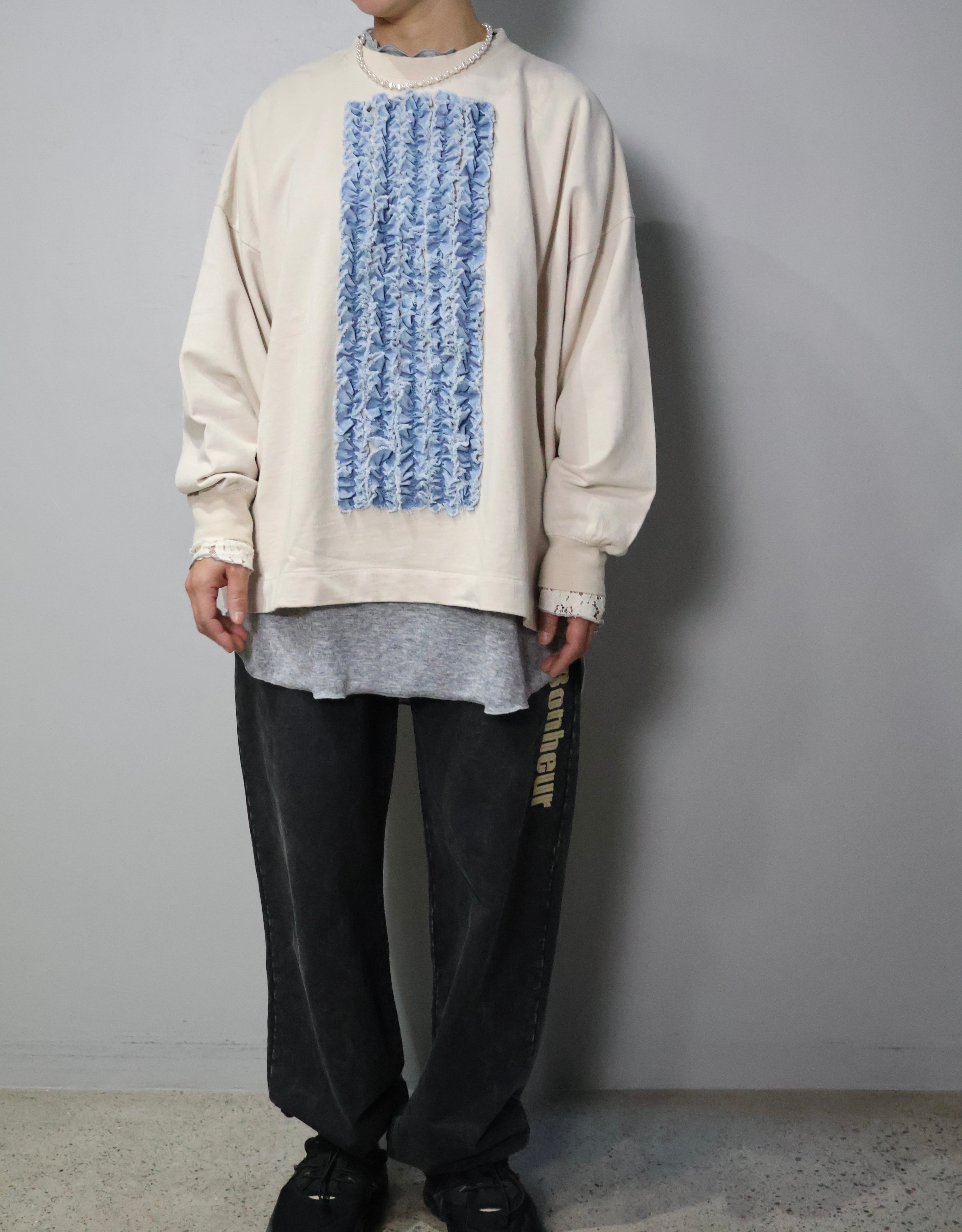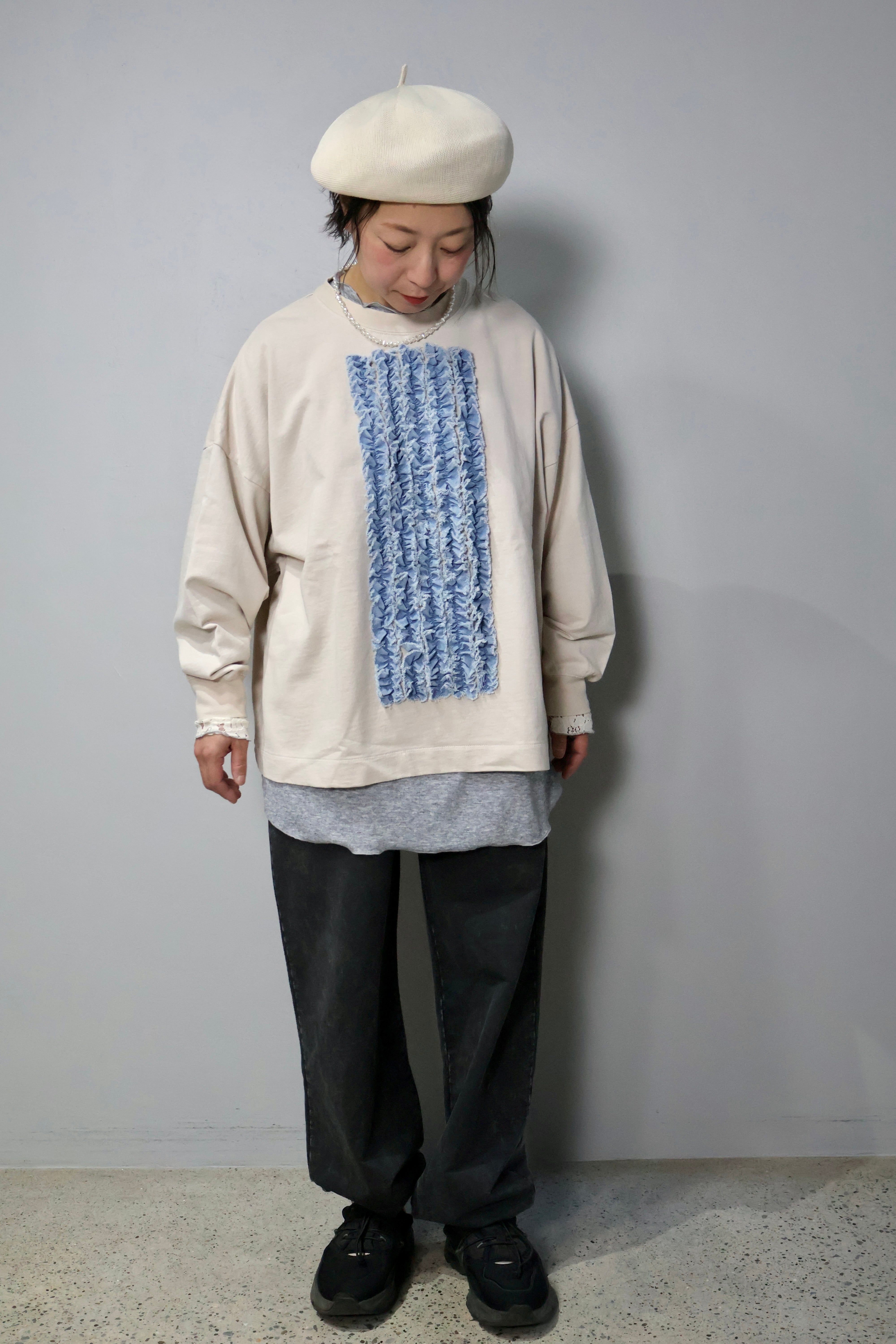 NEW!裏毛ビンテージデニムフリルクルー【12510-380-10】2026SS