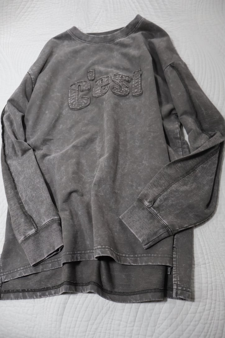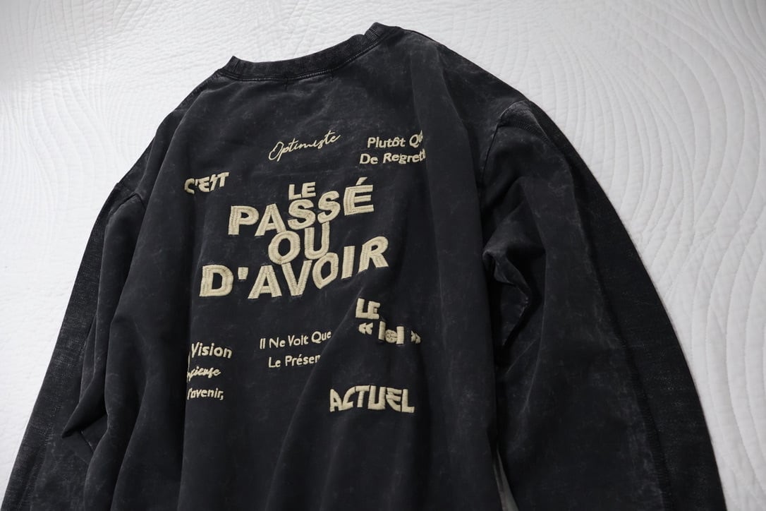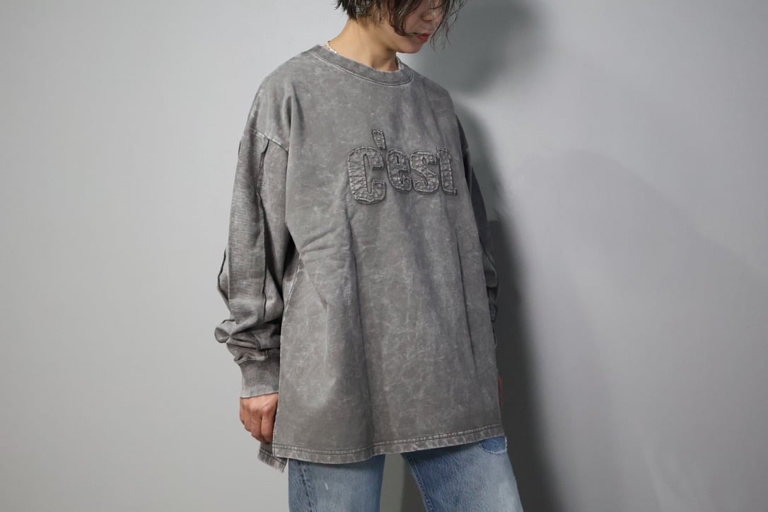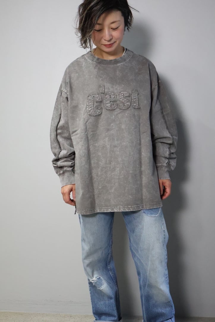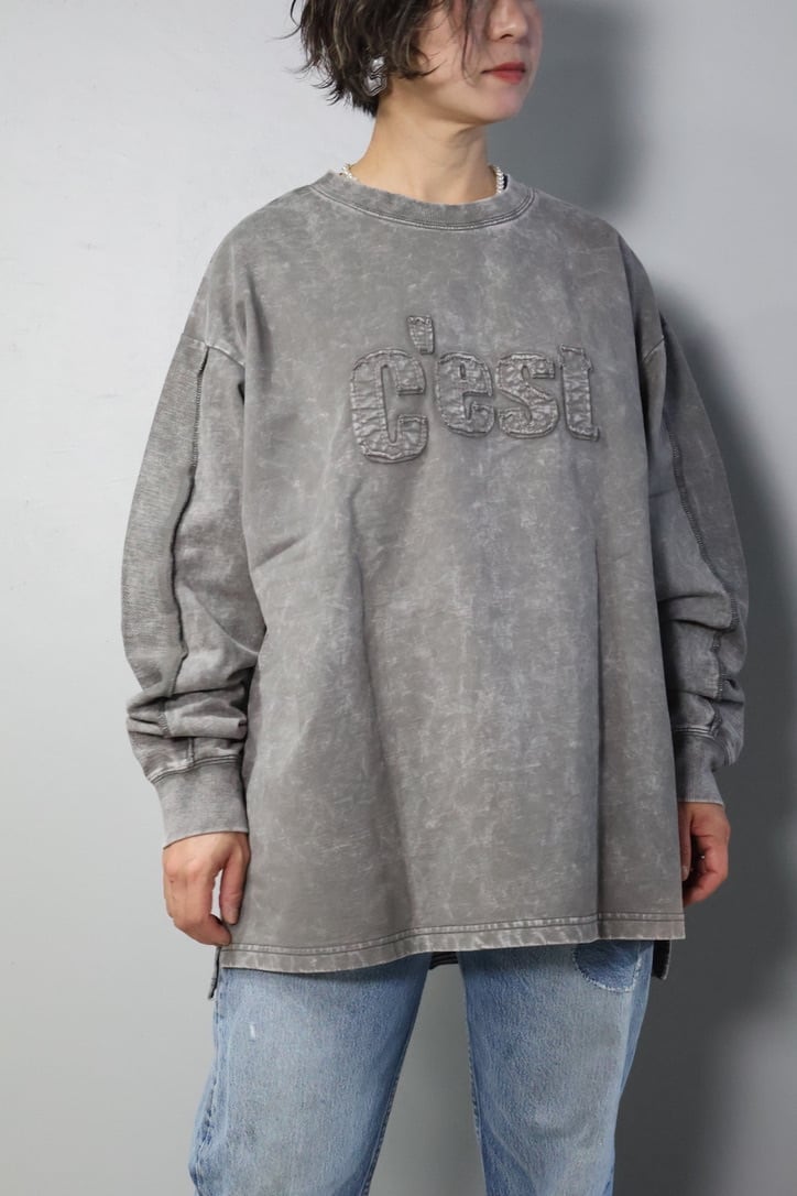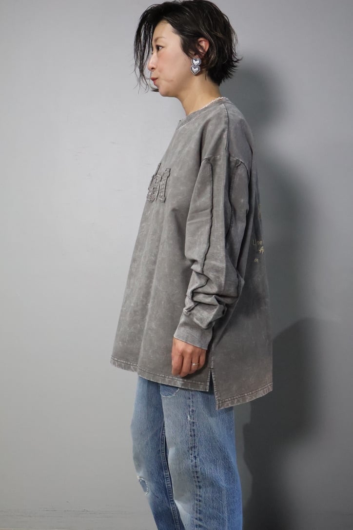 裏毛ピグメントたたきつけロゴ・back刺繍ロングクルーです。