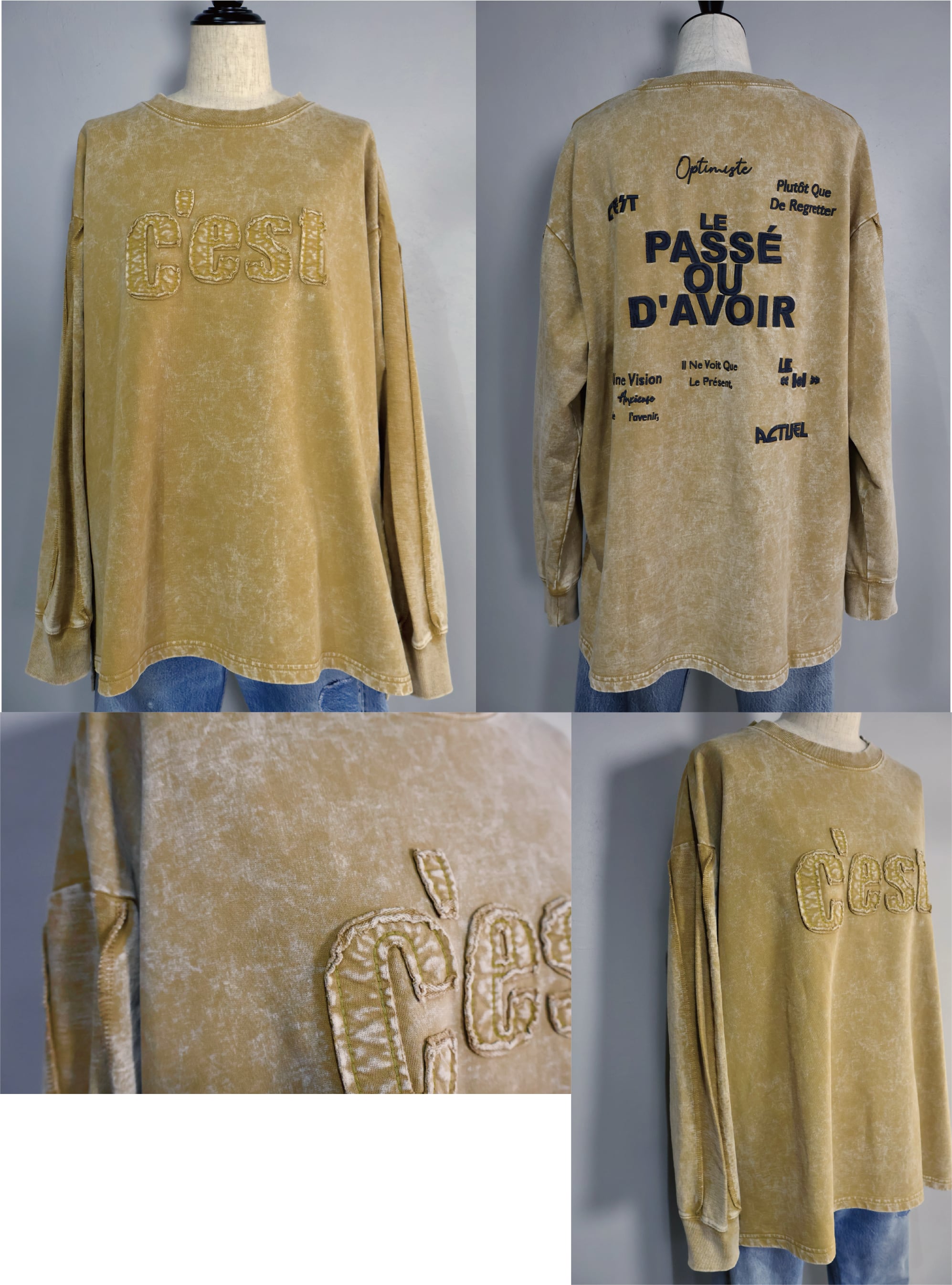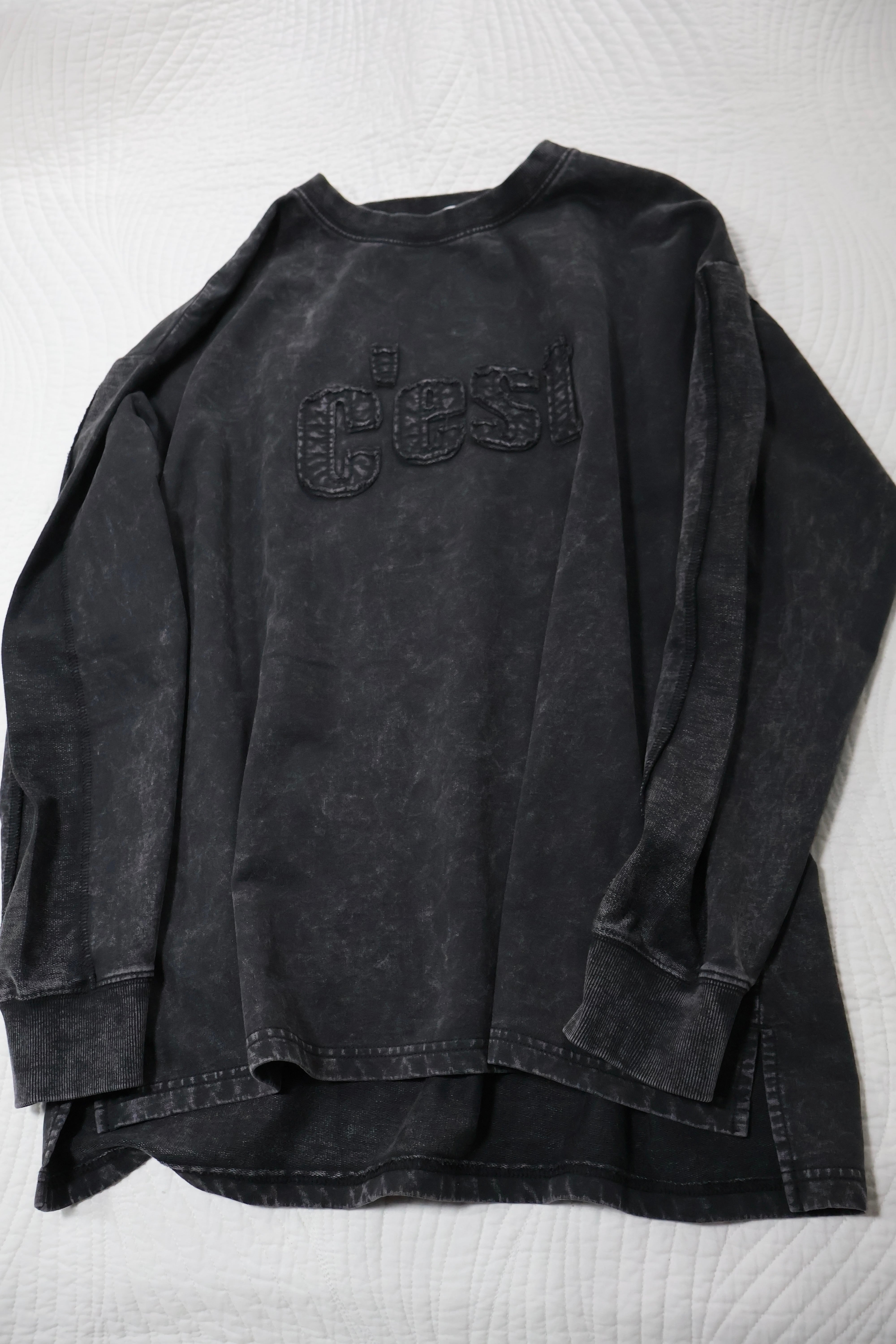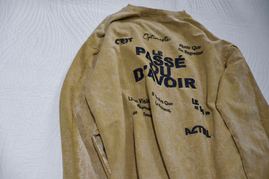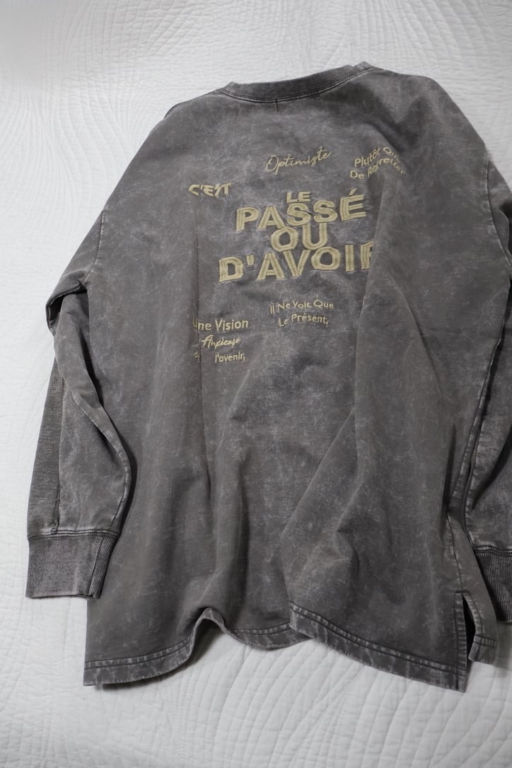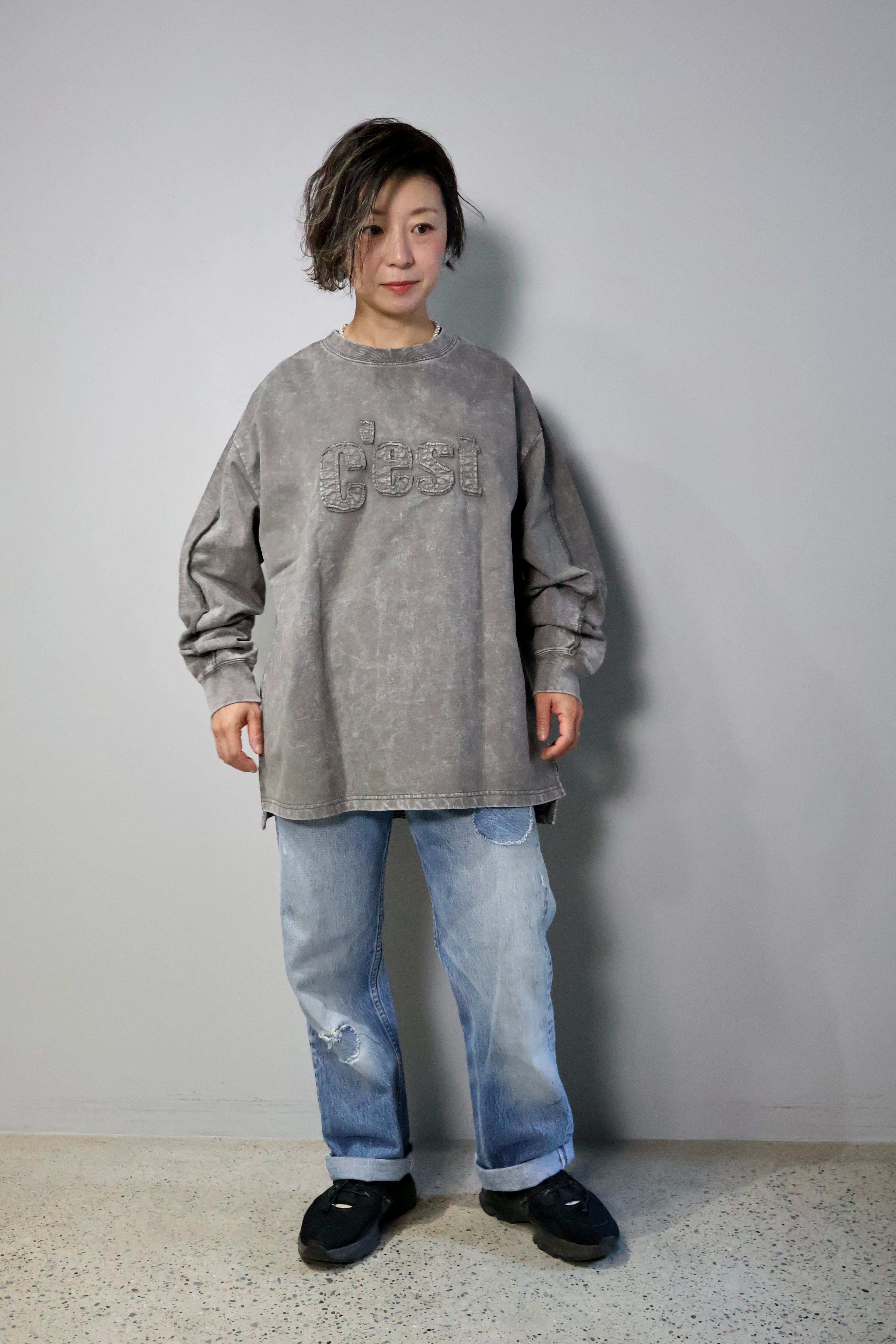 裏毛ピグメントたたきつけロゴ・back刺繍ロングクルーです。