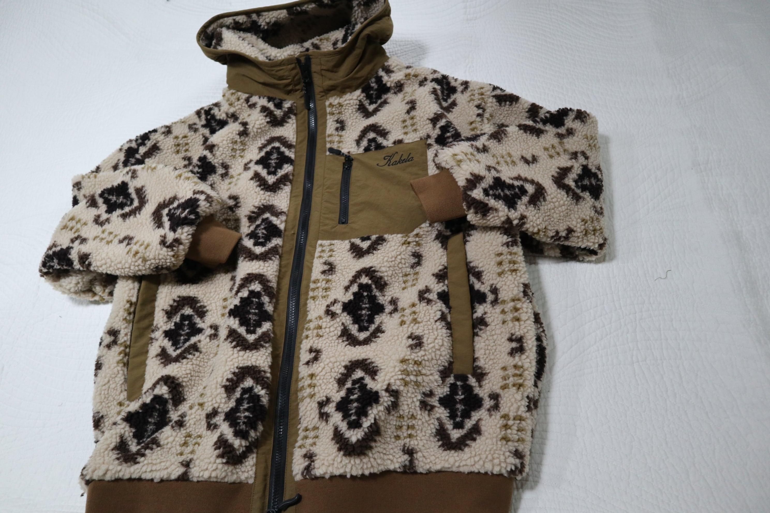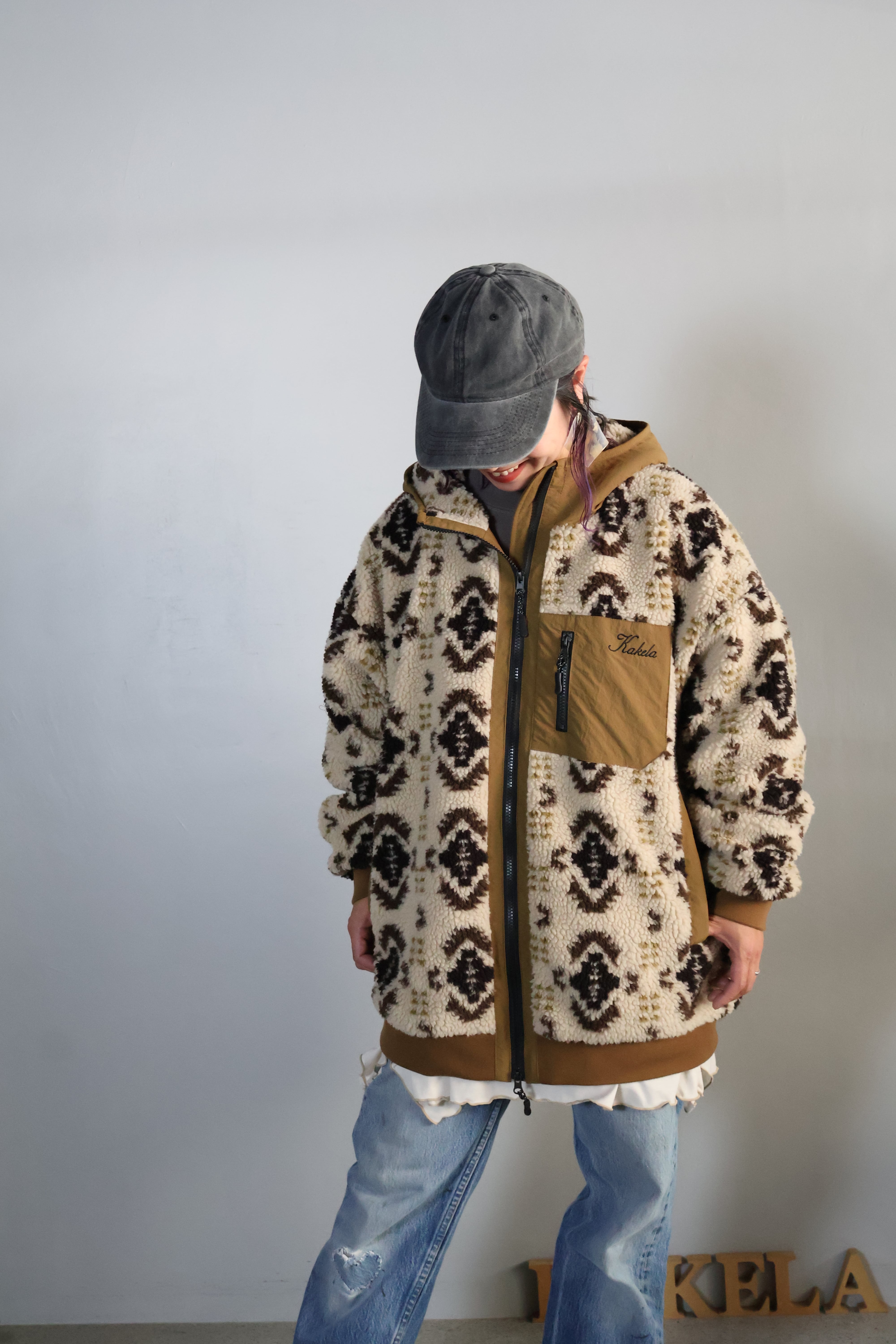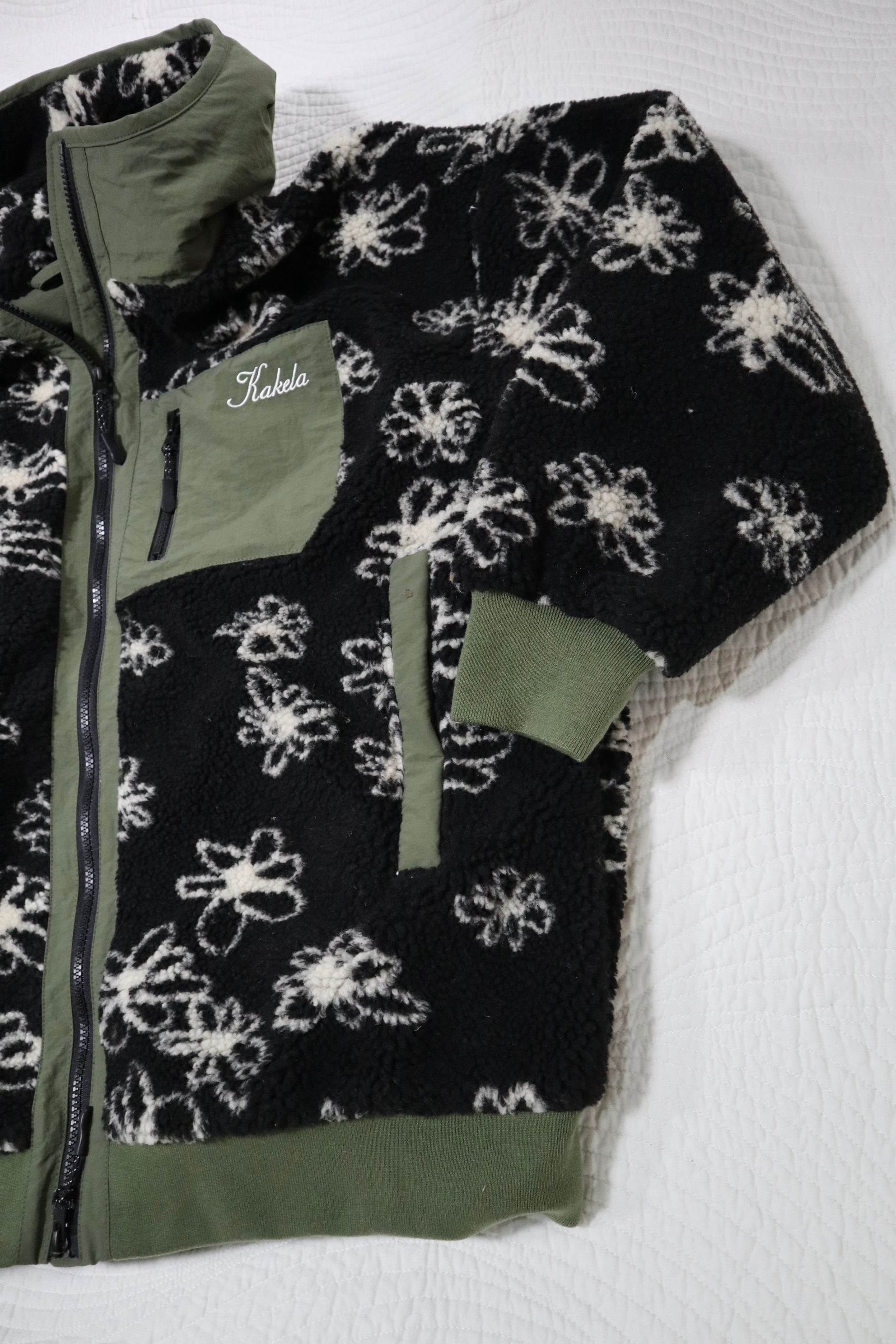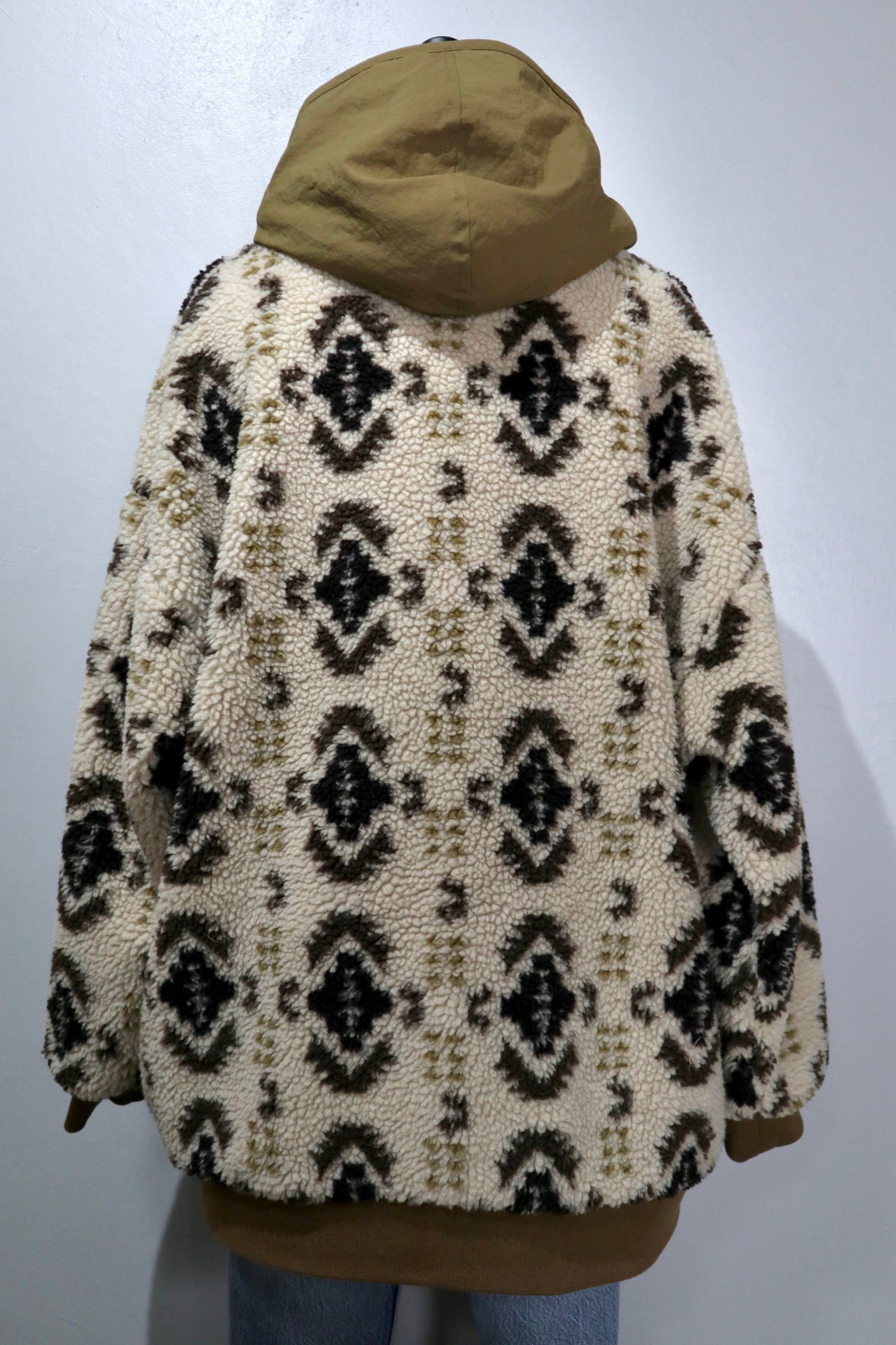 柄ボア×撥水ナイロン(総裏地)フードブルゾン【BLACK系花柄 01】です。