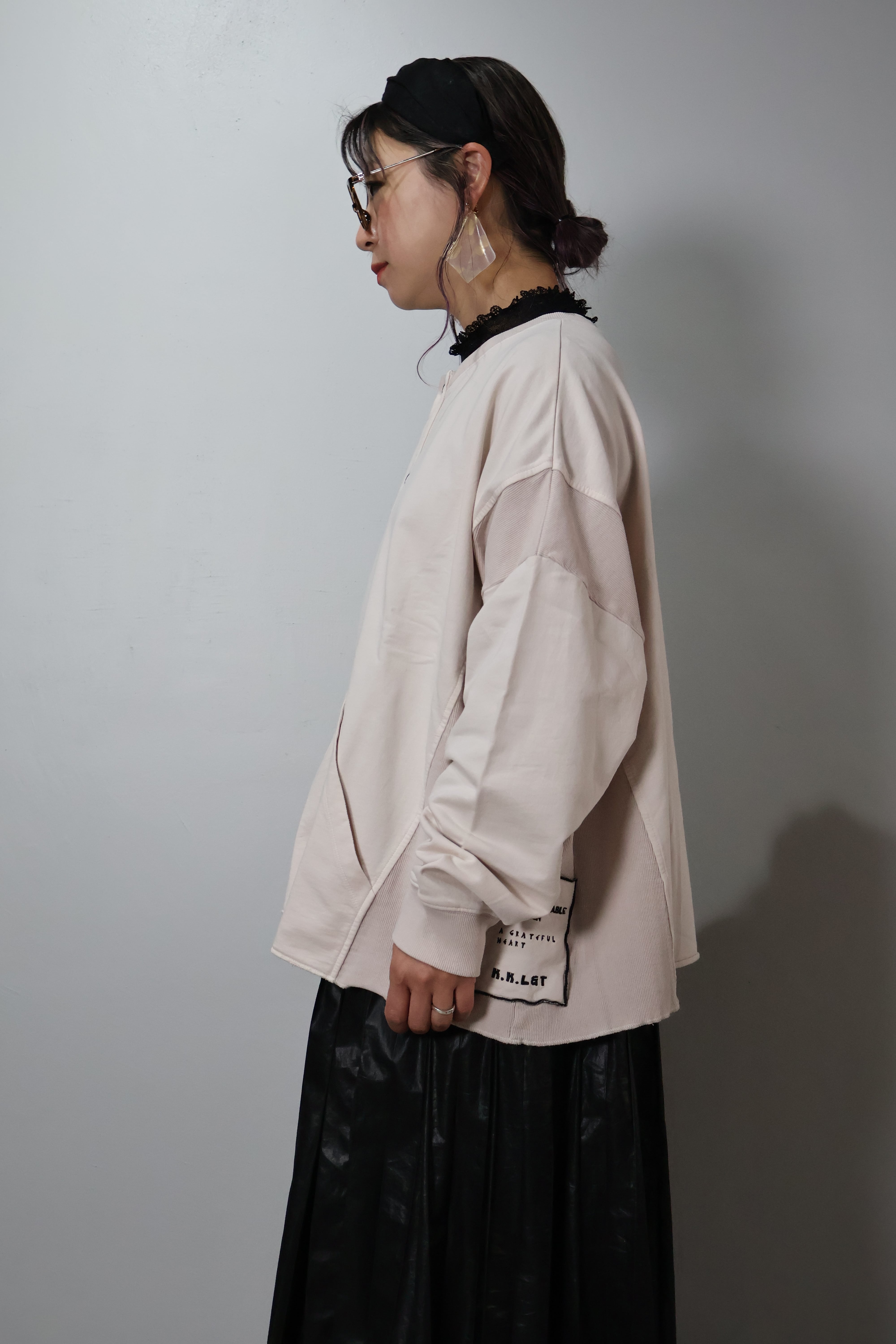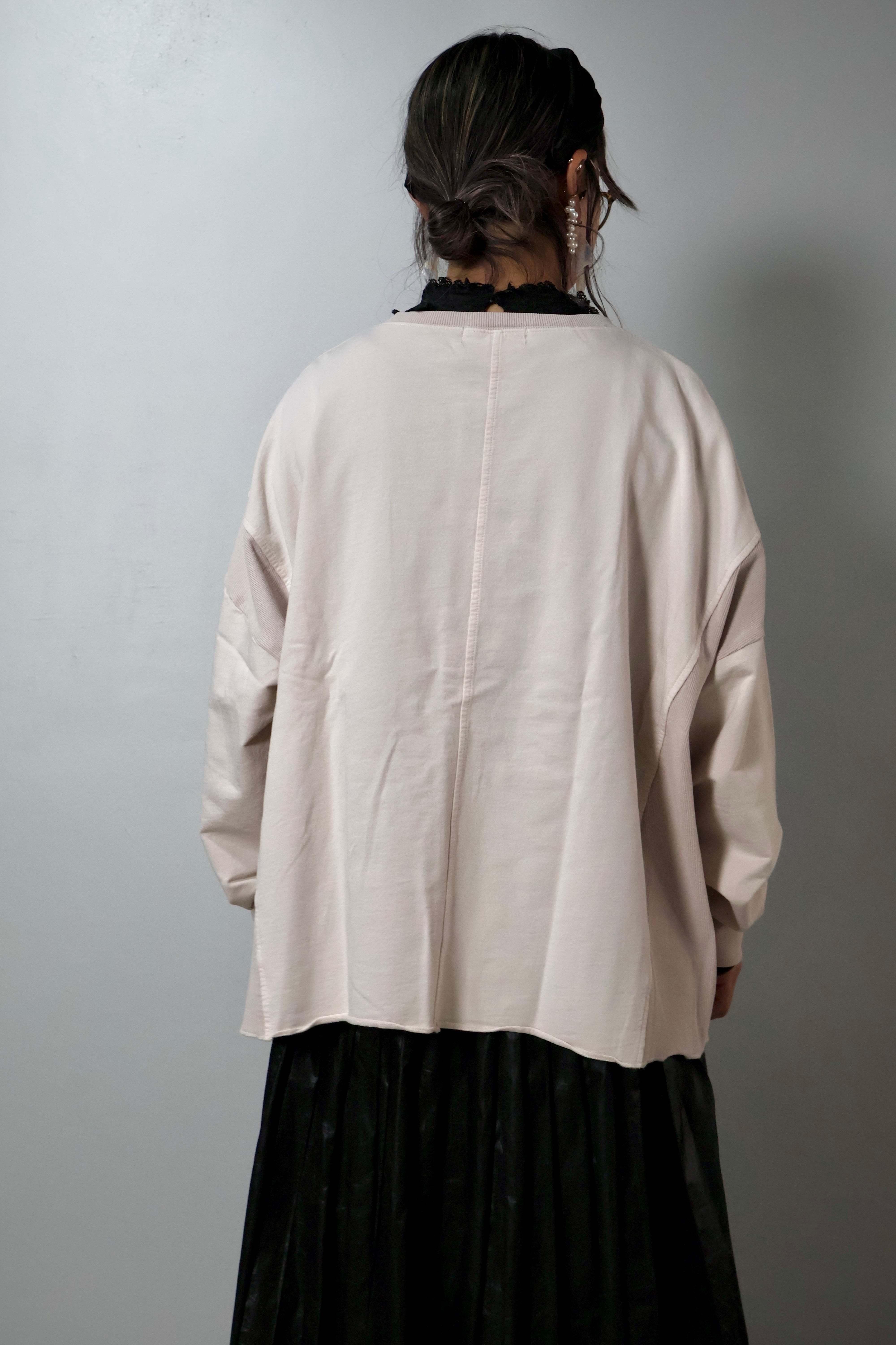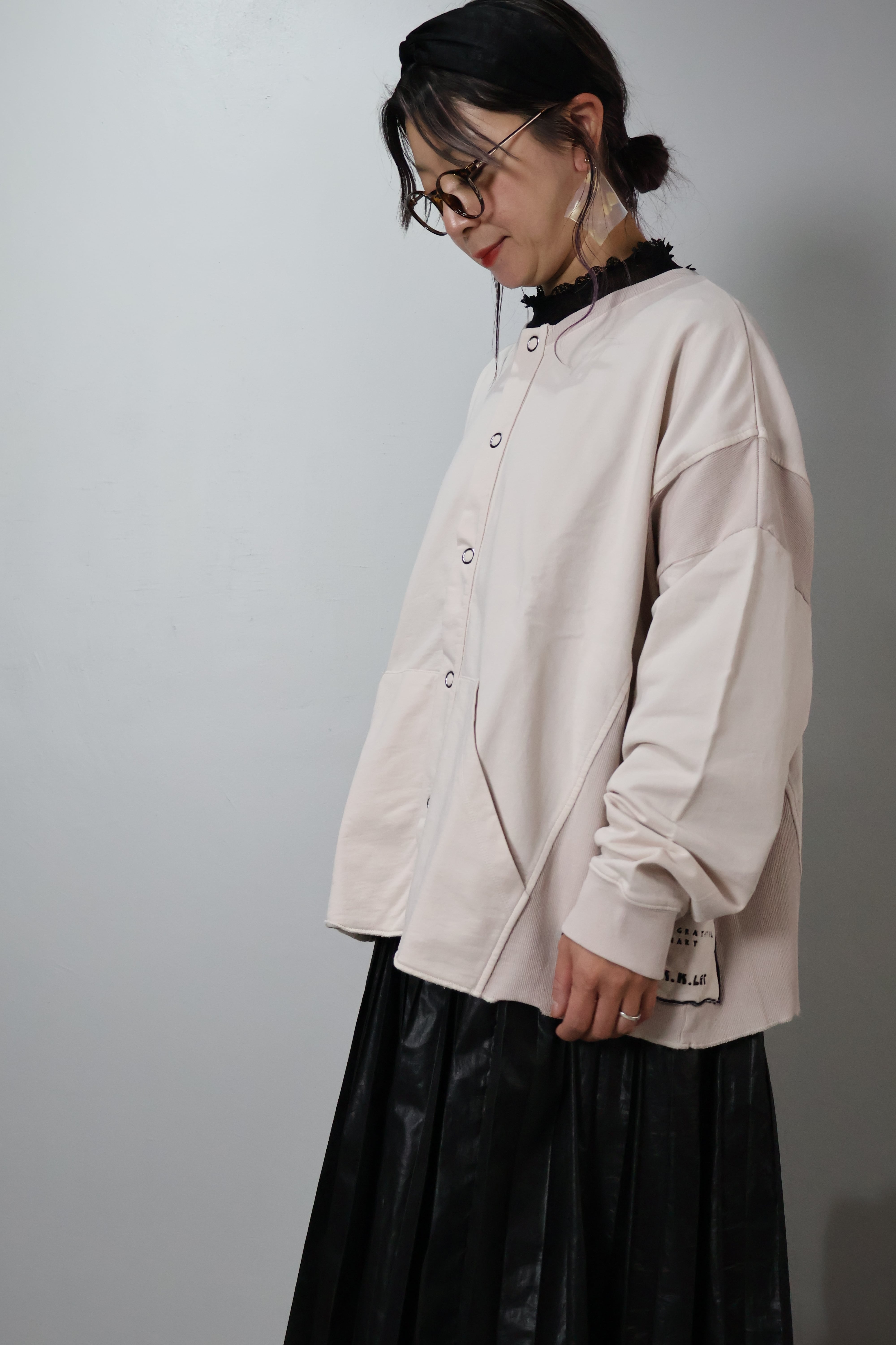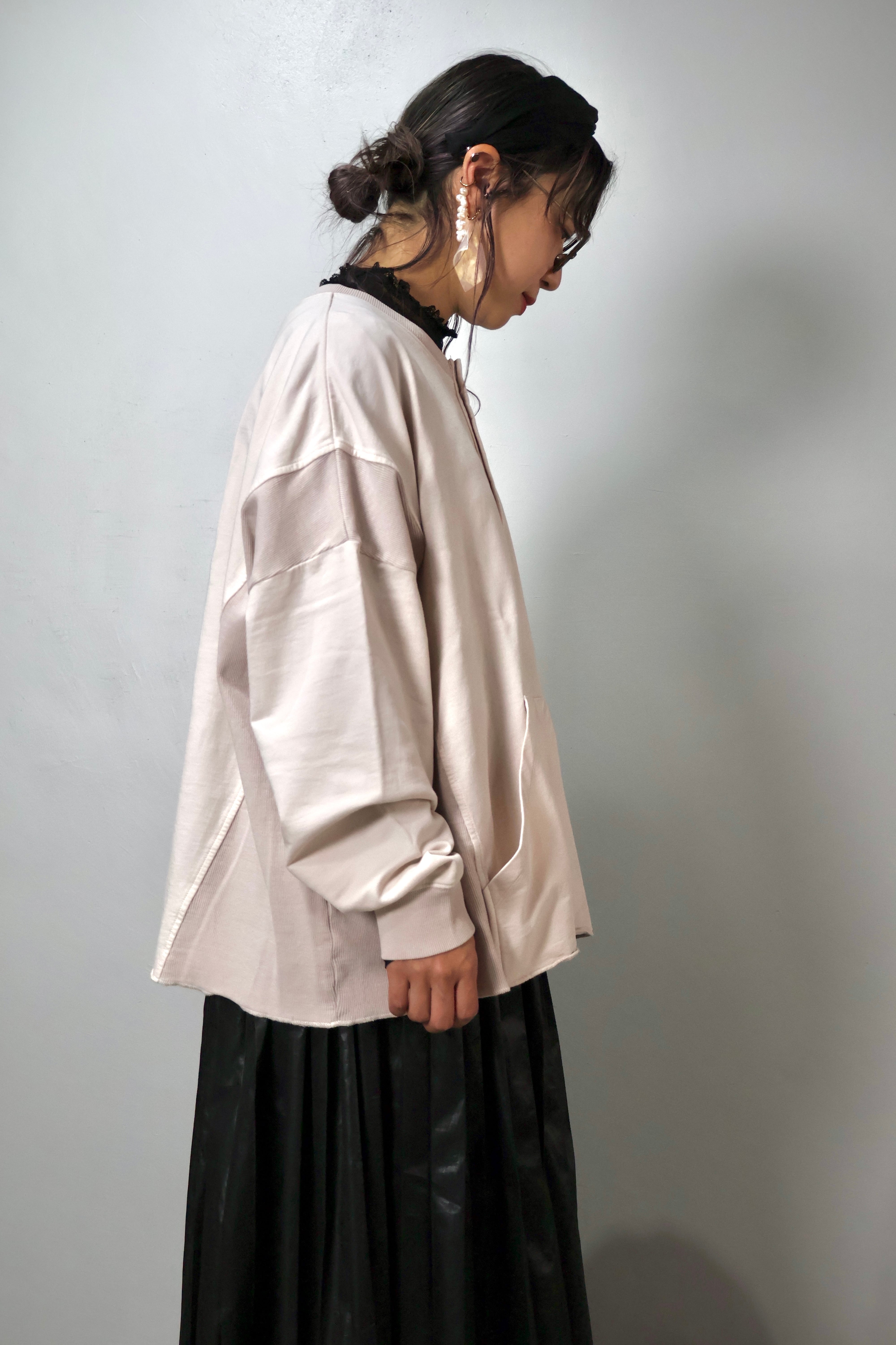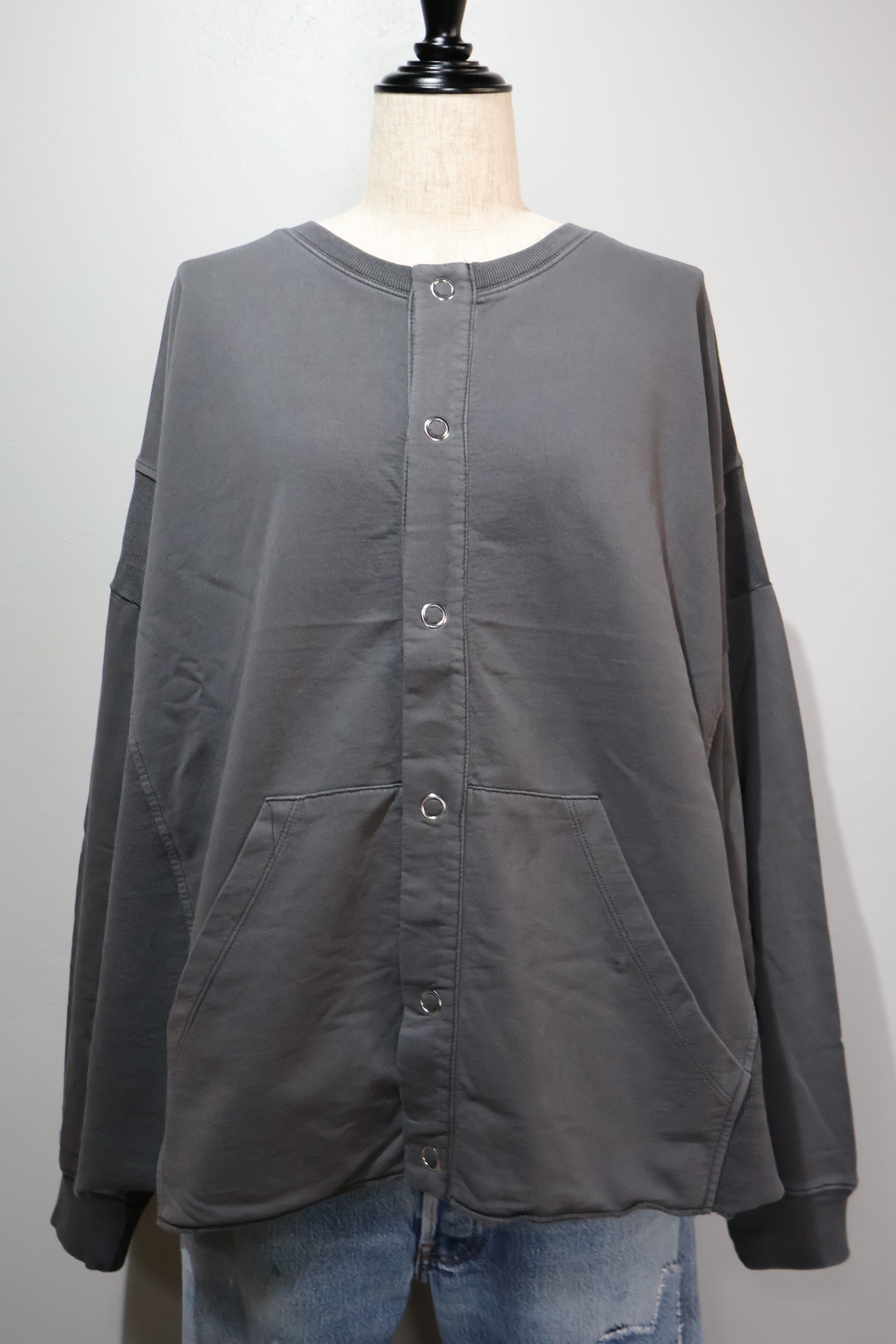 MINI裏毛製品染めワイドクルーカーデです。